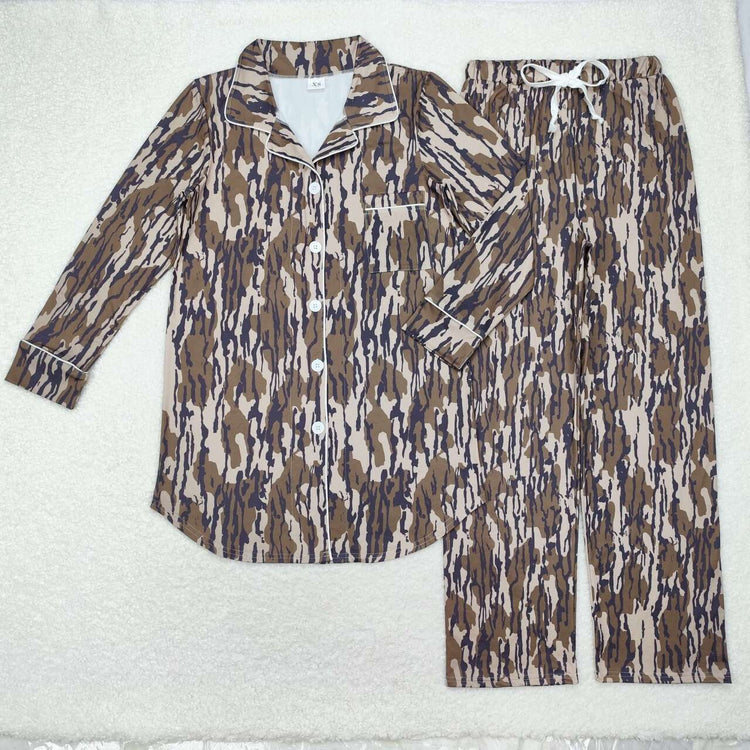 RTS NO MOQ(In Stock) GLD1547 Brown-green camouflage beige zip-up long-sleeved skirt set