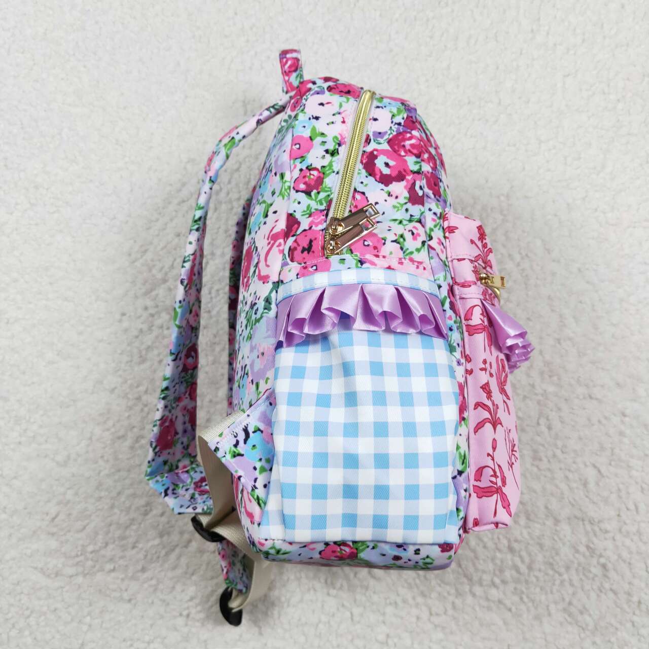 BA0099 Blue and purple flower lace plaid backpack