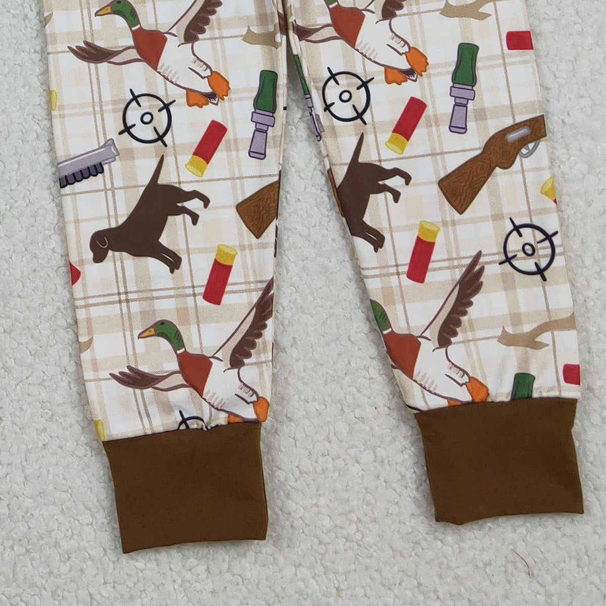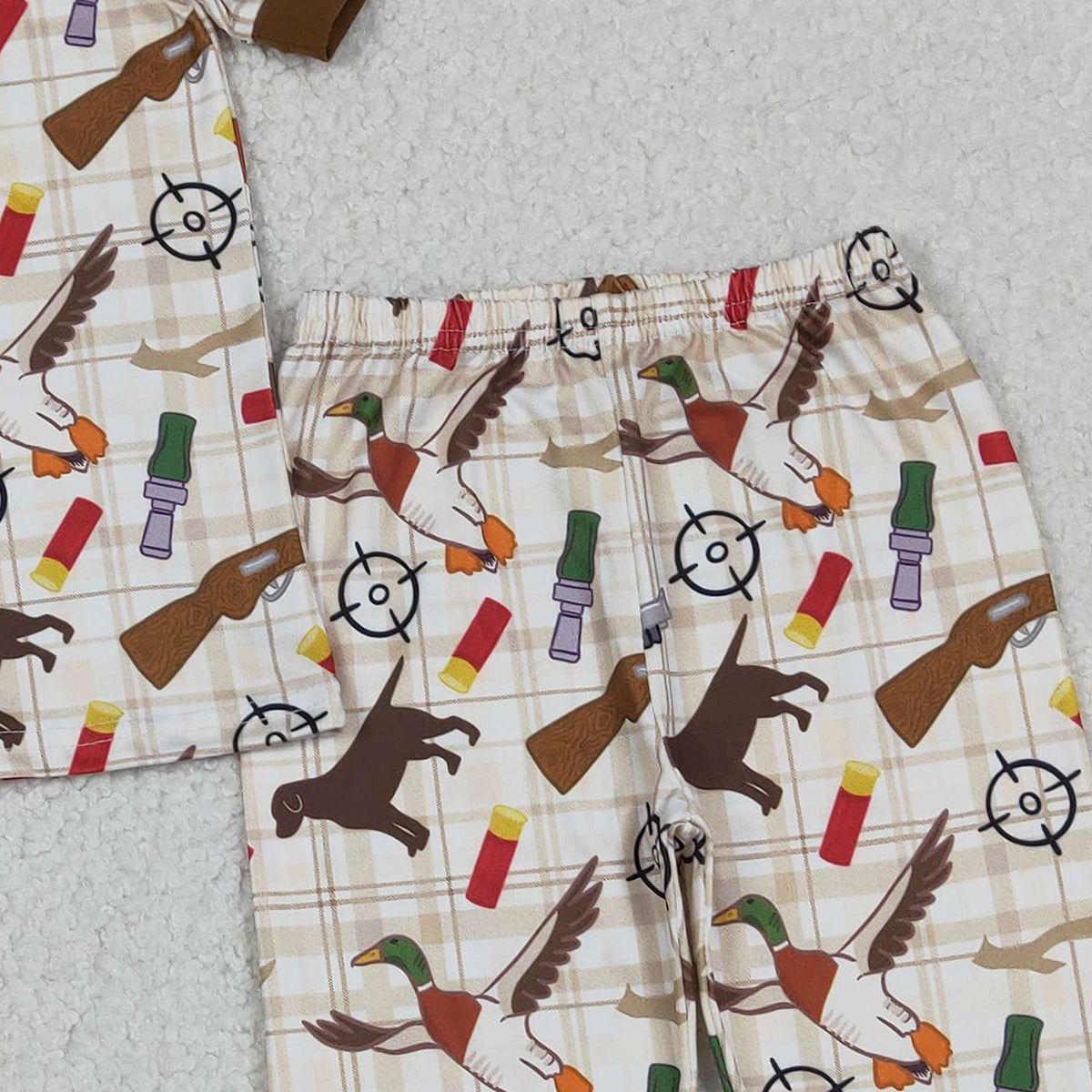 Baby Boys Khaki Checked Hunting Pajamas Set with Dogs And Ducks Design Top And Pants Matching Sleepwear for Infants