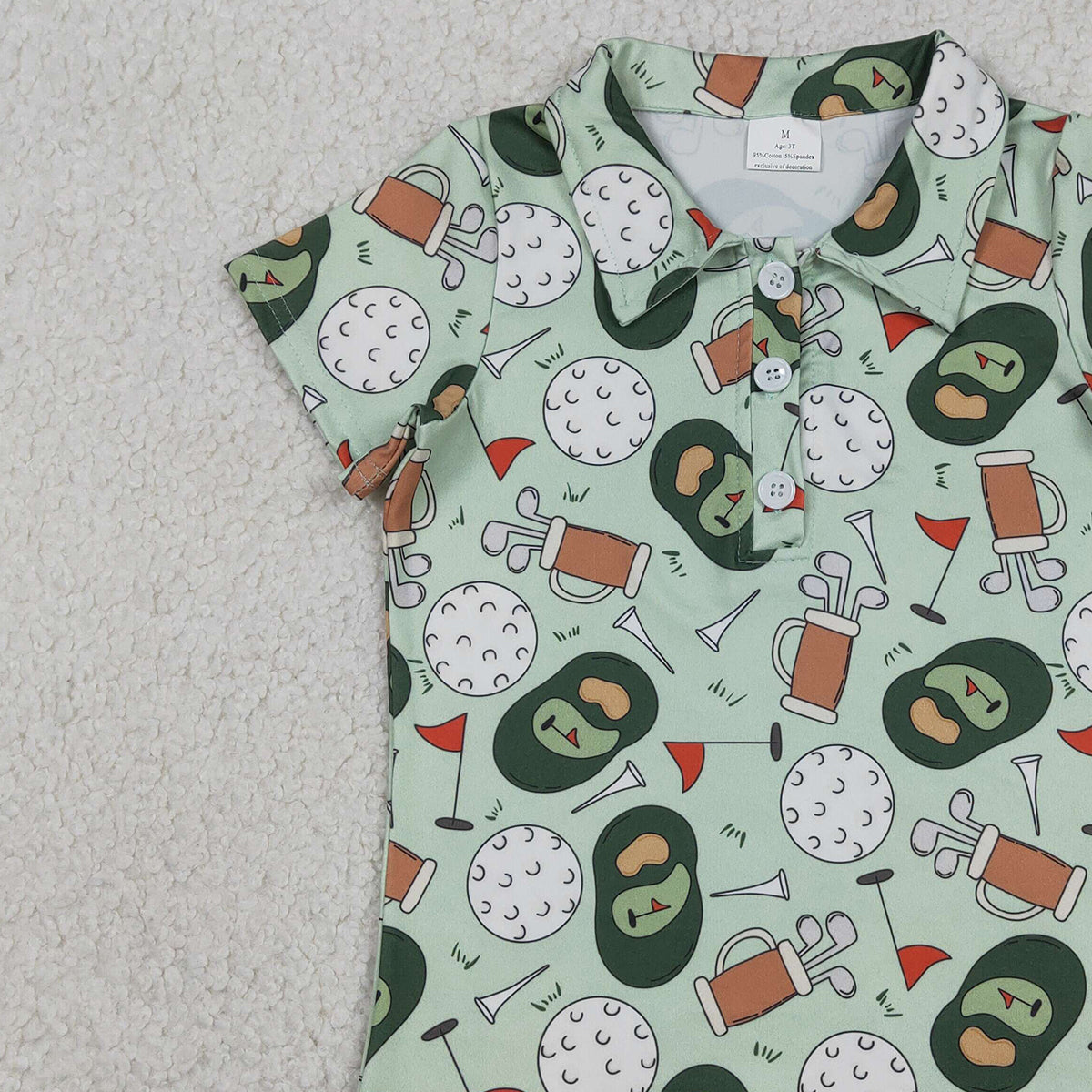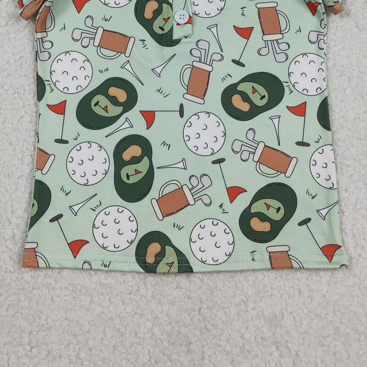 Baby Boys Green Golf Flags Team Button Polo Shirts Top for Kids Fashionable Teamwear