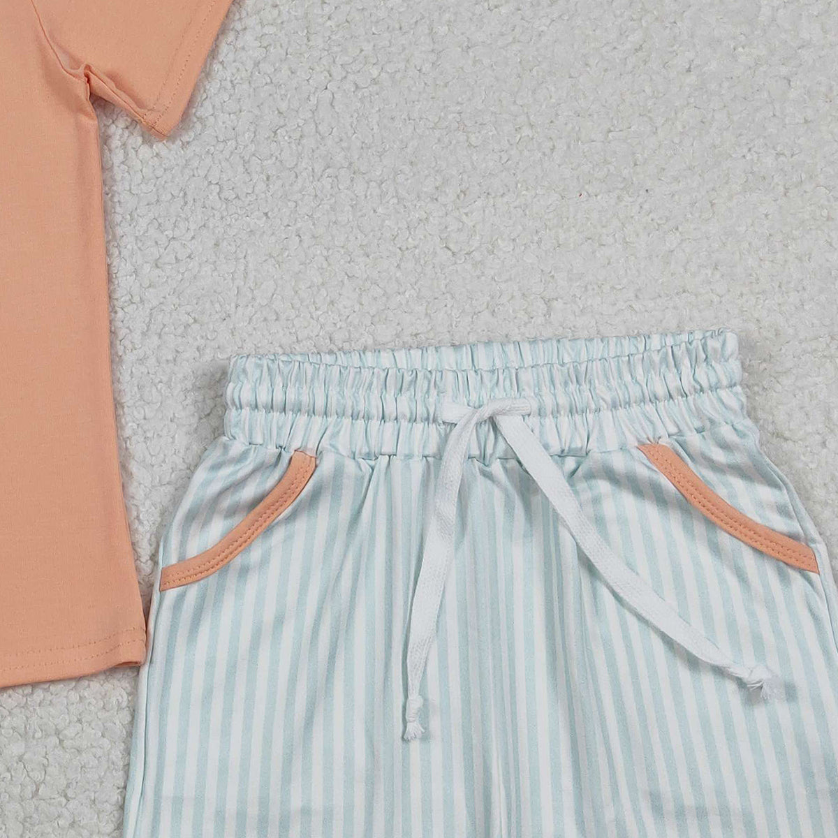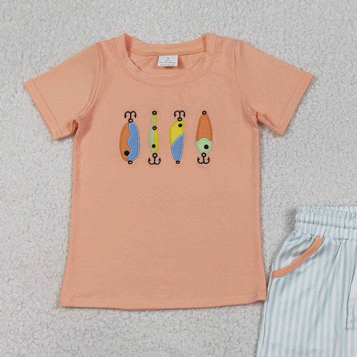 Embroidery Fishing Baby Boys Outfit with Pockets Short Sleeve Shirt And Hunting Themed Clothing Set for Toddlers