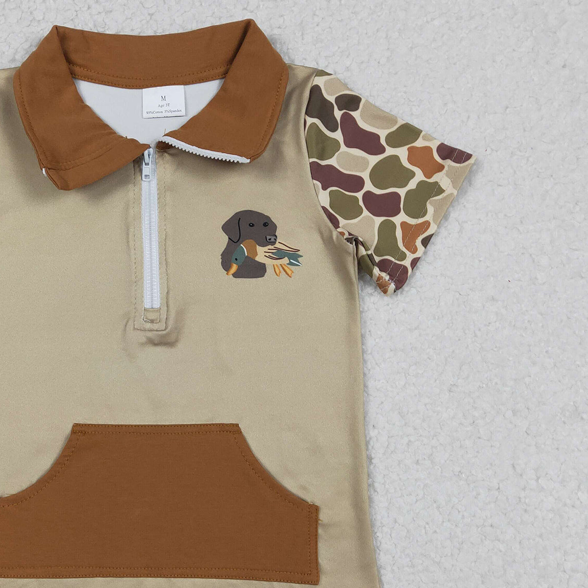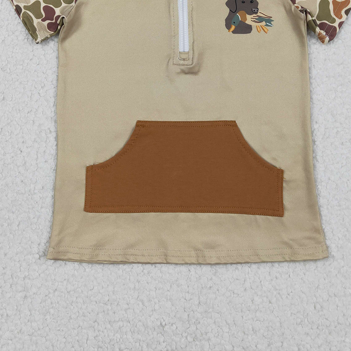 Baby Boys Southern Khaki Camouflage Zip Pullover Top with Pockets Duck And Dog Print Hunting Theme Clothing