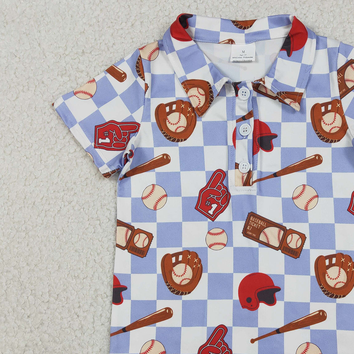 Baby Boys Blue Checked Baseball Team Button Polo Shirts Top Cute Kids Fashion Outfit for Little Ones