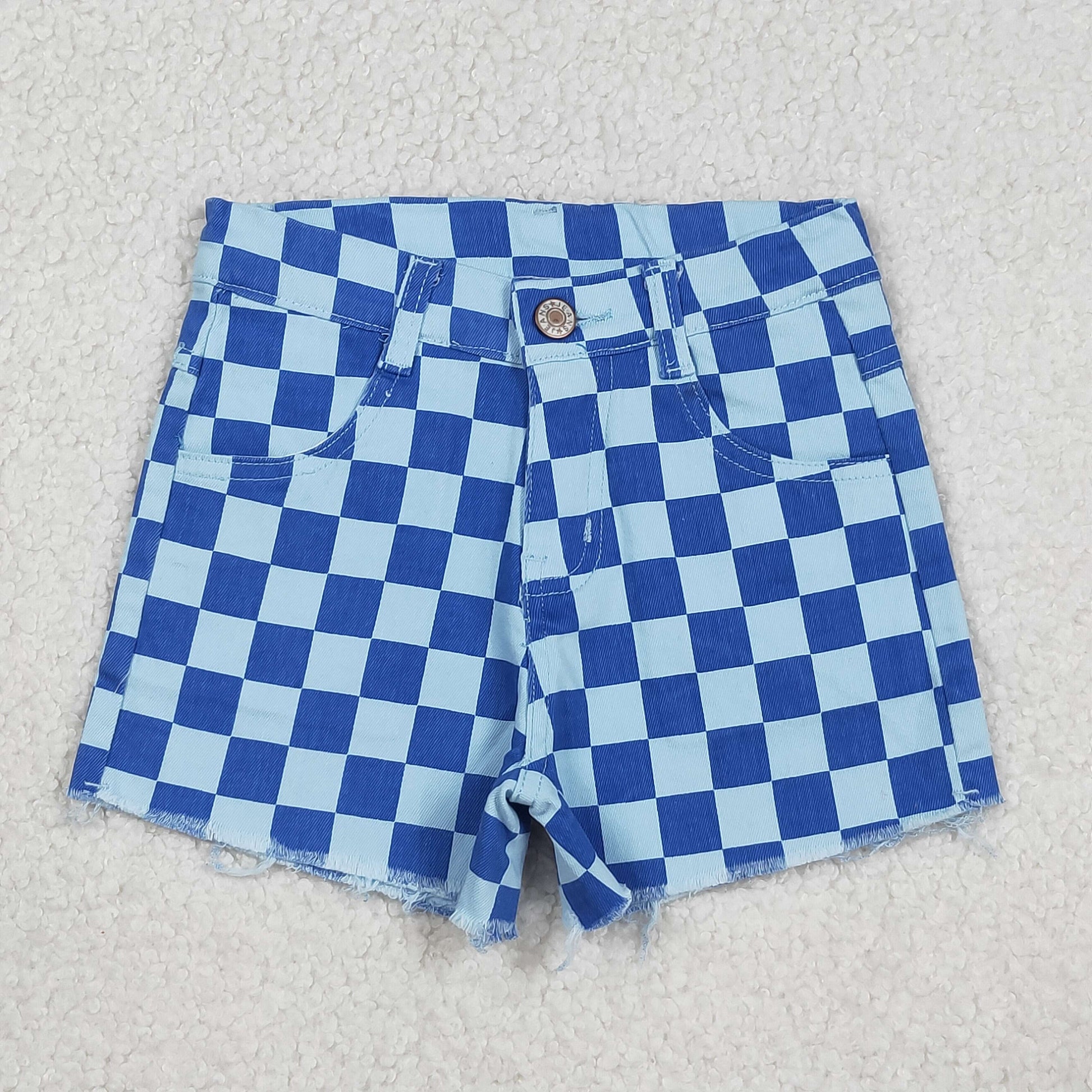 Sibling Baby Girls Checked Denim Shorts with Pockets Bottom for Children's Clothing
