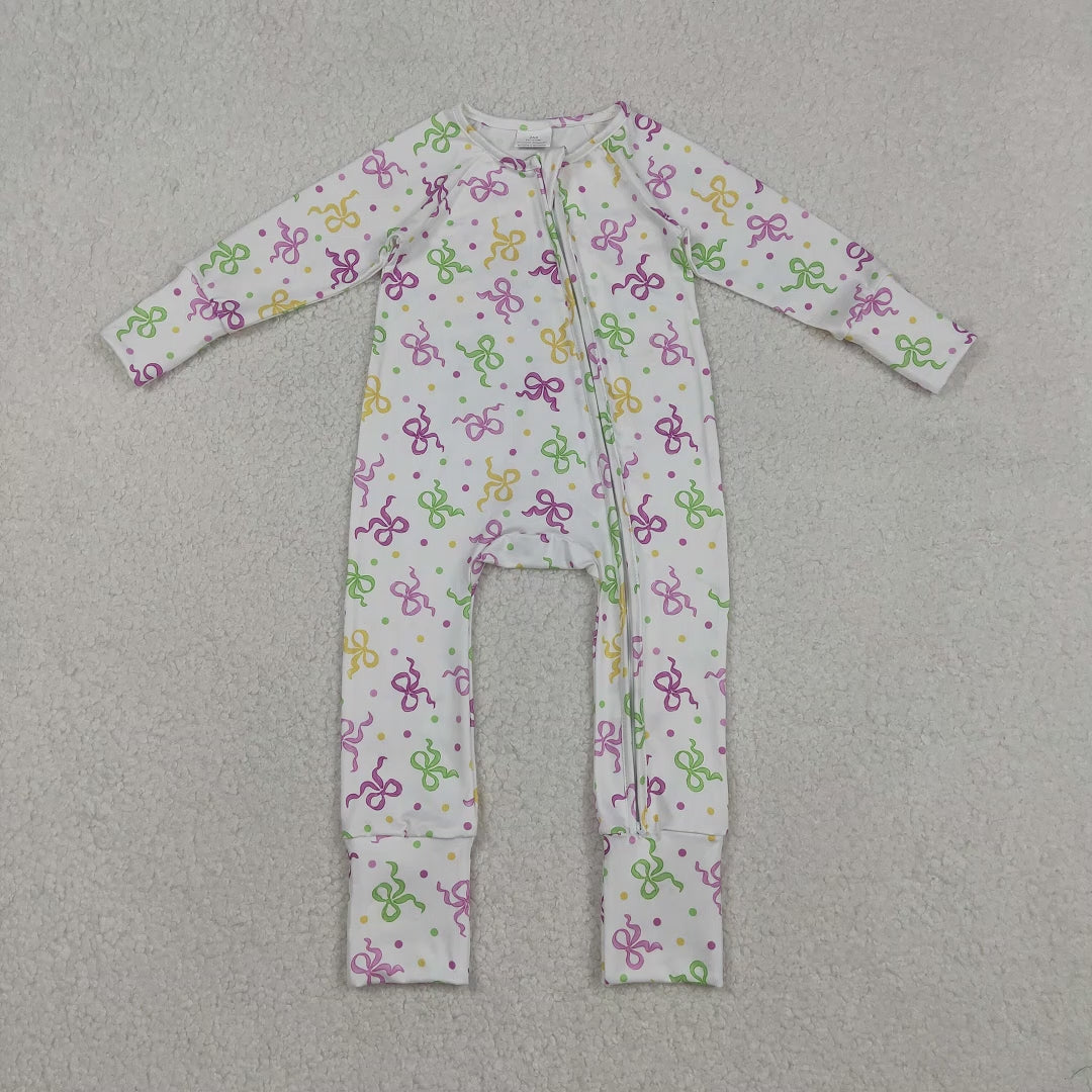 Baby Girls Convertible Rompers with Mardi Gras Bows Polka Dots Two-Way Zipper Soft Cotton Outfit for Infants