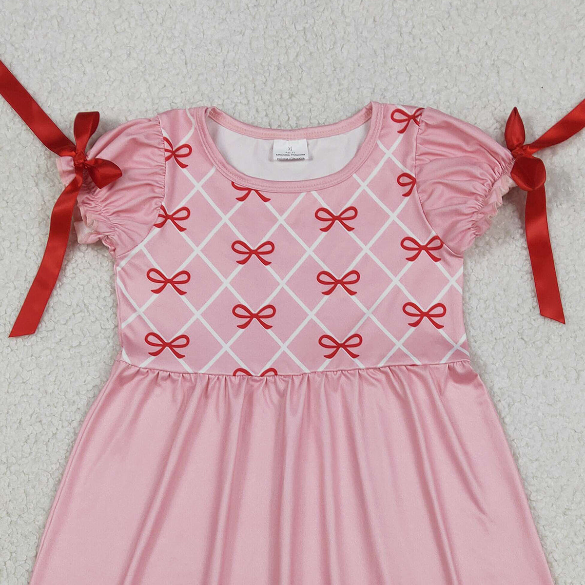 Baby Girls Knee-Length Dress Short Sleeve Red Bows Checked Pattern Cute Feminine Fashion for Little Ones