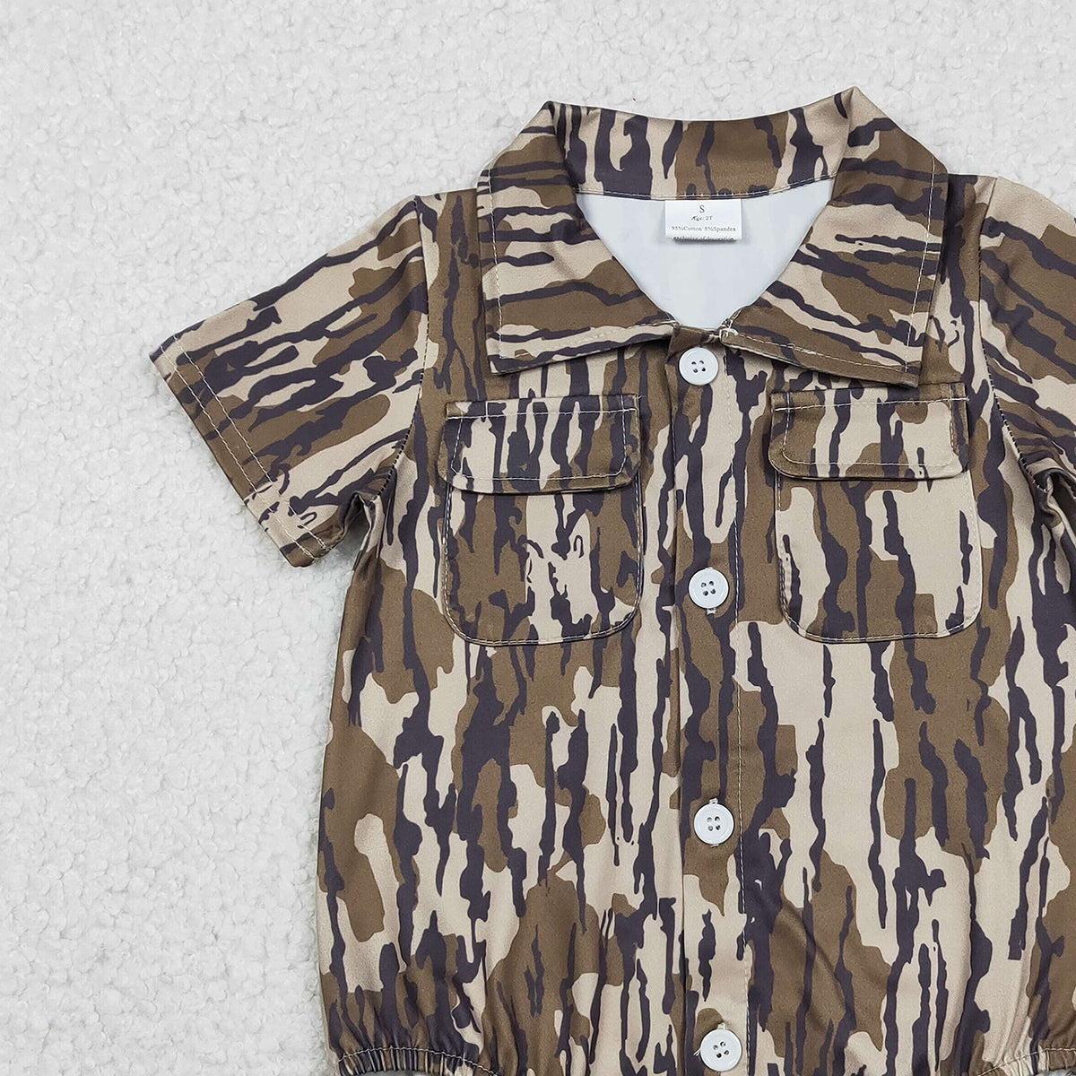 Baby Boys Southern Olive Camouflage Rompers with Button Pockets Cute Baby Outfit