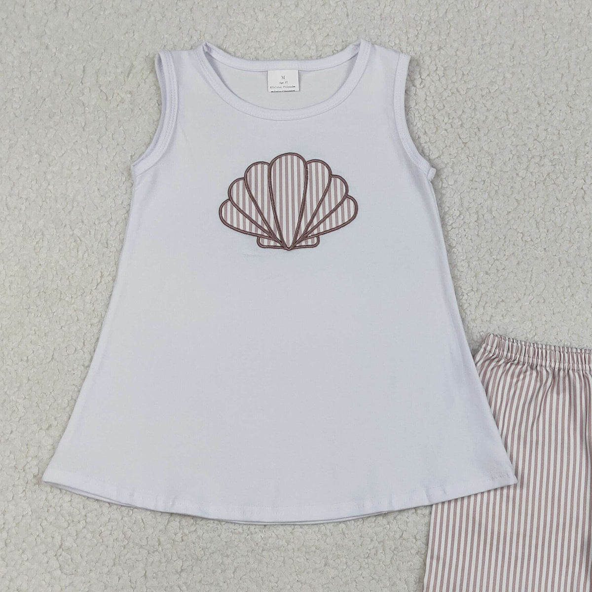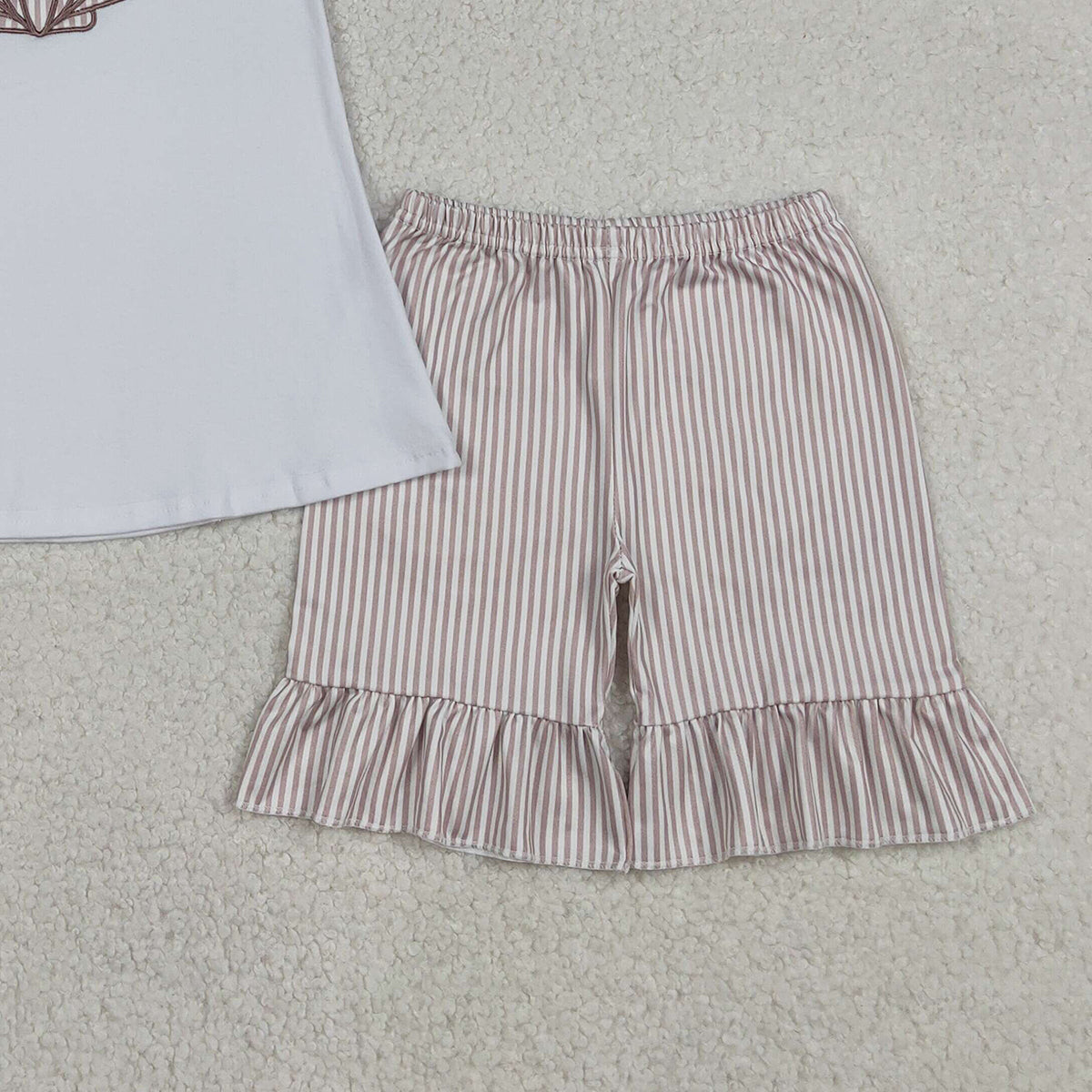 Baby Girls Embroidery Tunic Ruffle Shorts Outfit Set Stripe Shells Design Comfortable Soft Fabric Children's Wear Clothing Set
