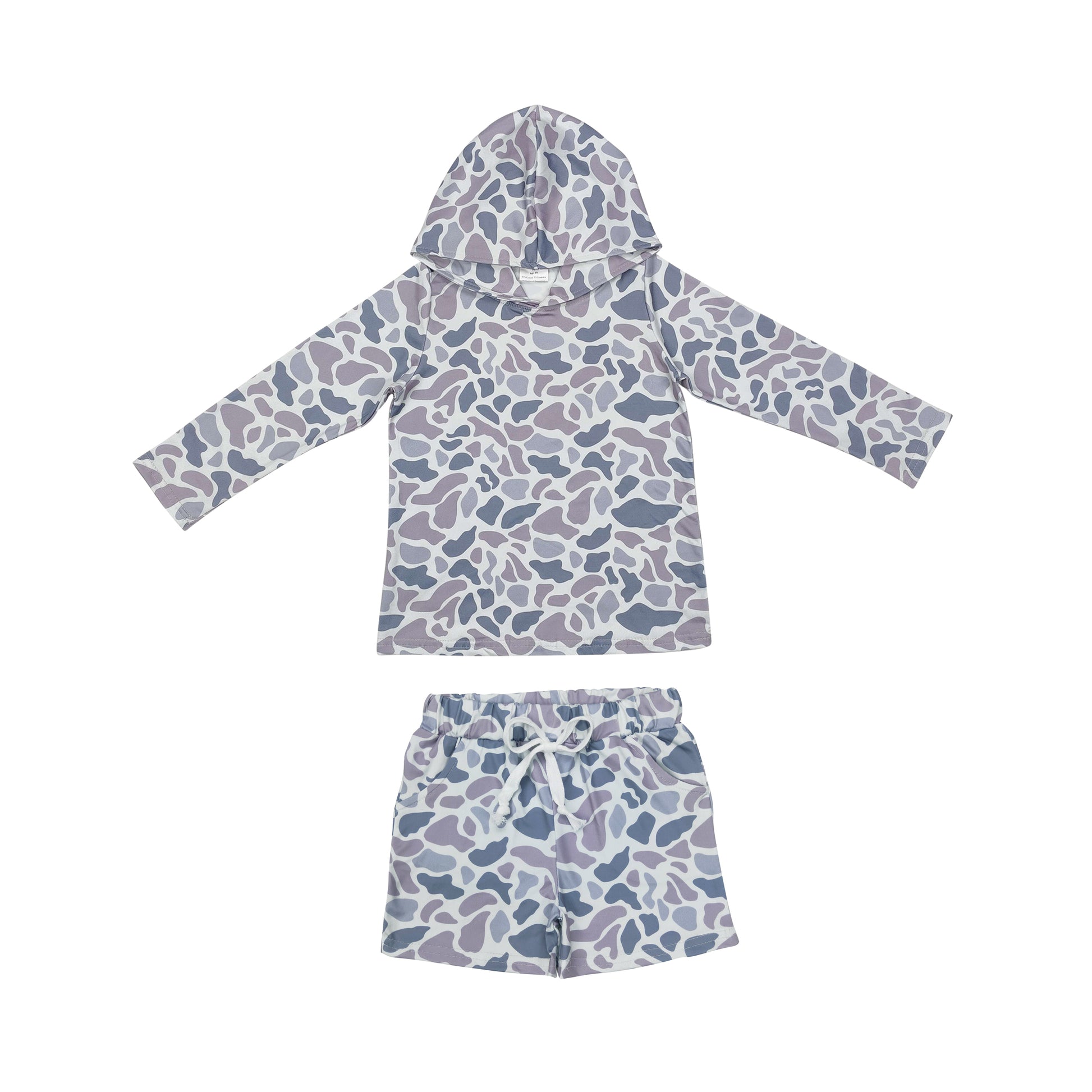 BLS0005 Baby Boys Light Grey Camo Long Sleeves Hoodie Shorts Team Clothes Sets D 905