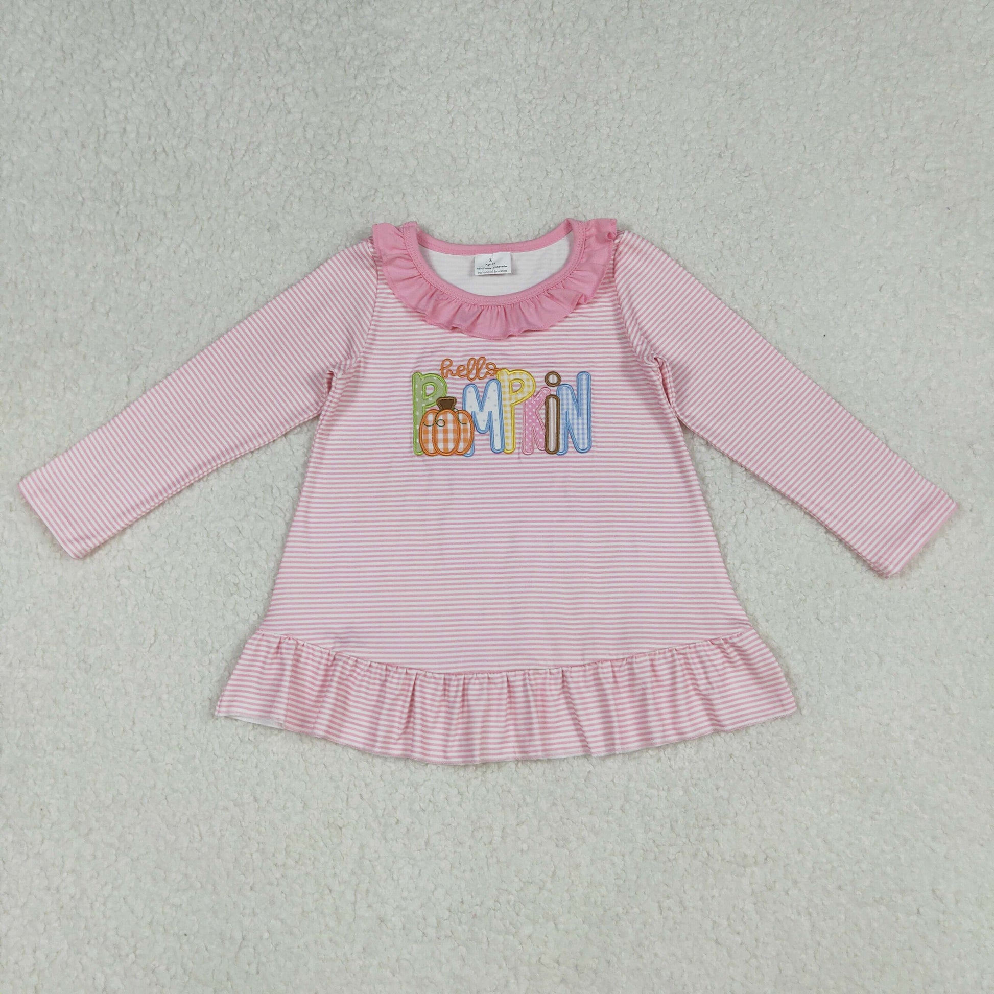 GT1183 Embroidery Pumpkins Baby Girls Pink Stripe Fall Tee Shirts Top D 930