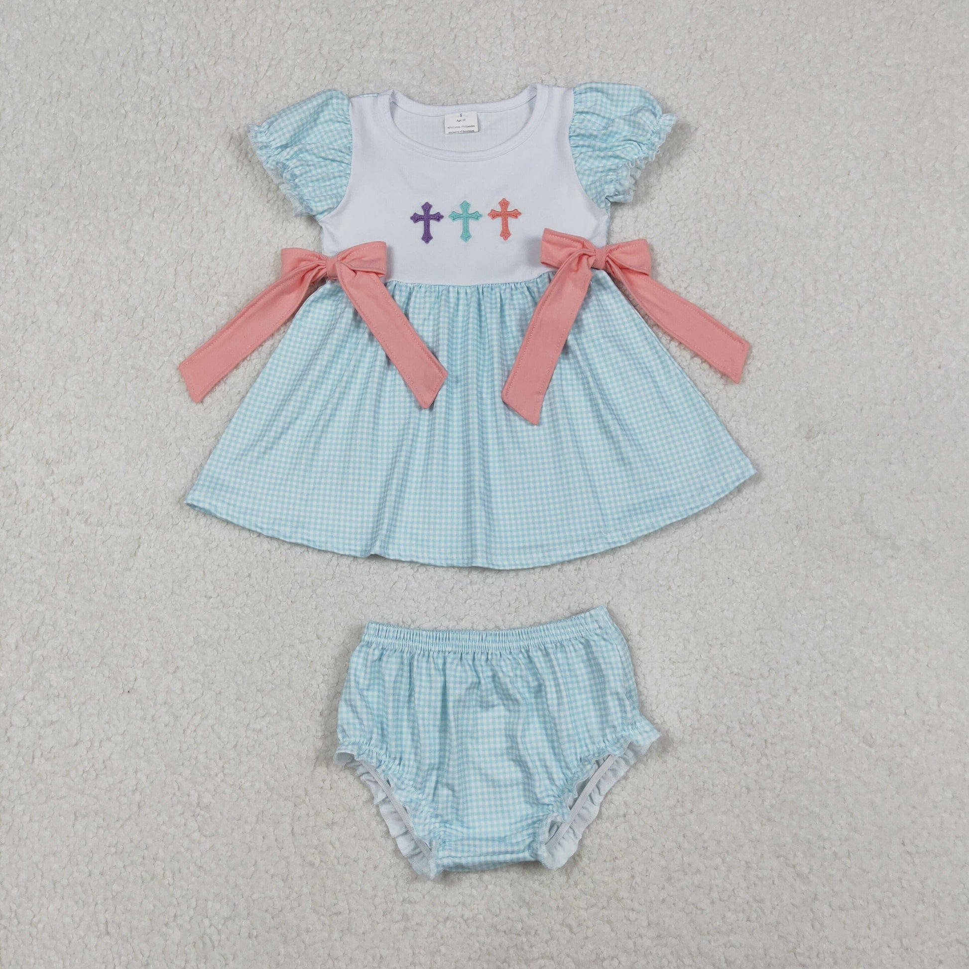 GBO0480 Embroidery Crosses Baby Girls Bows Tunic Bummies Easter Clothes Sets D 1030