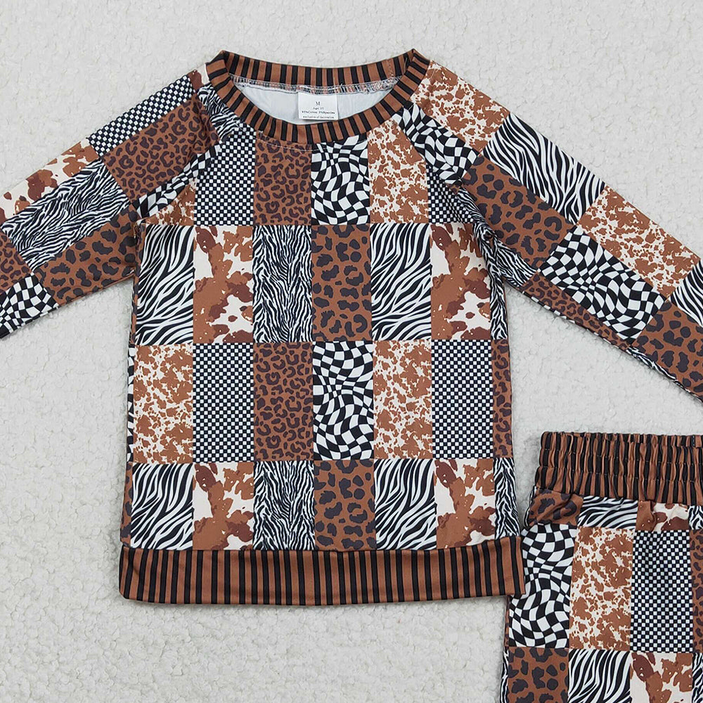 RTS NO MOQ(In Stock) GLS0079 Cute Children's Baby Girls Leopard Cow Print Checked Top Shorts Western Clothes Sets