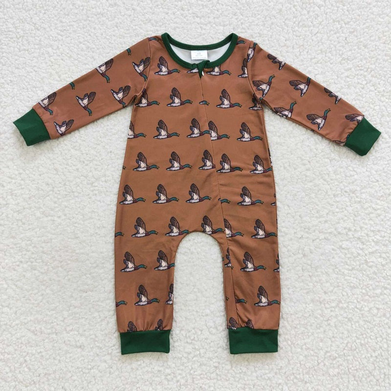 LR0524 Mallard Tan Green Zip Long Sleeve Bodysuit