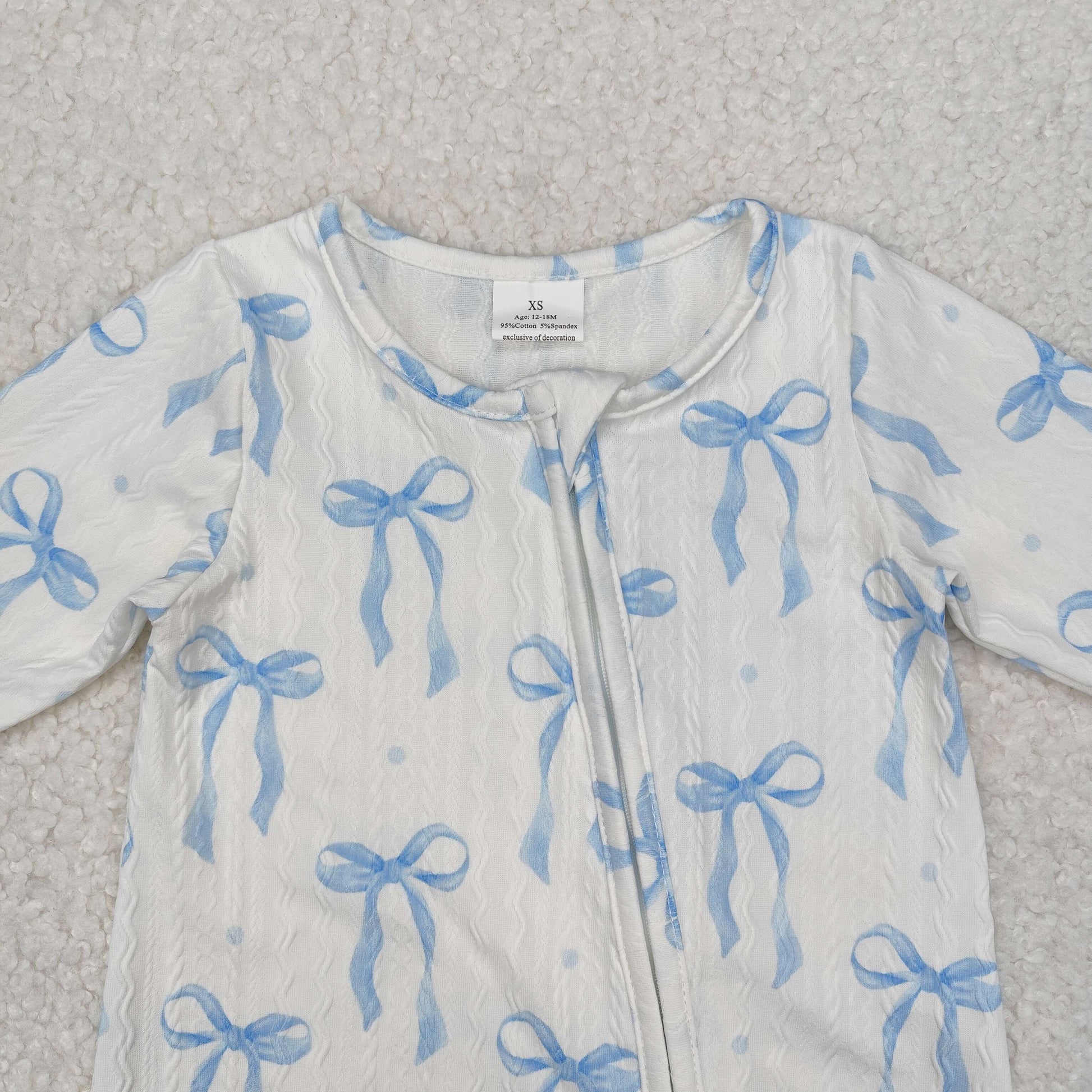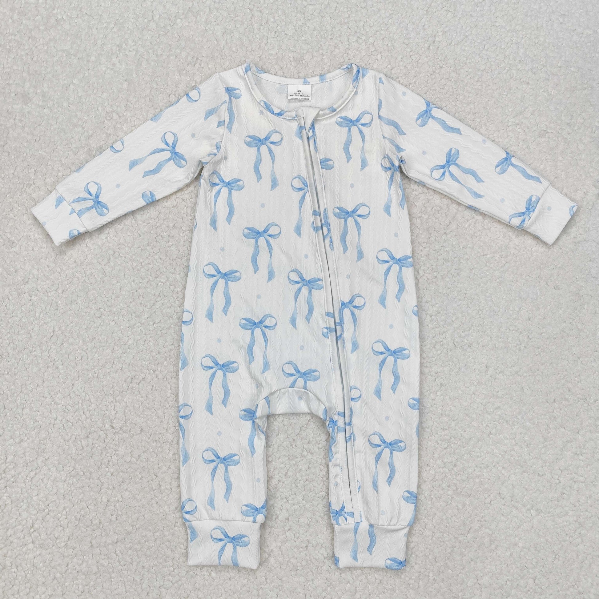 LR2070 Baby Infant Girls Blue Bows Cable Knit Zip Rompers