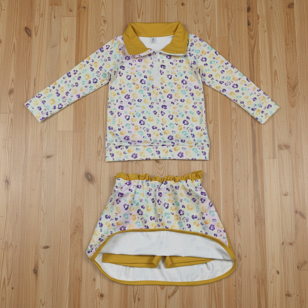 mardi gras leopard athletic zip pullover skort set yoga outfit