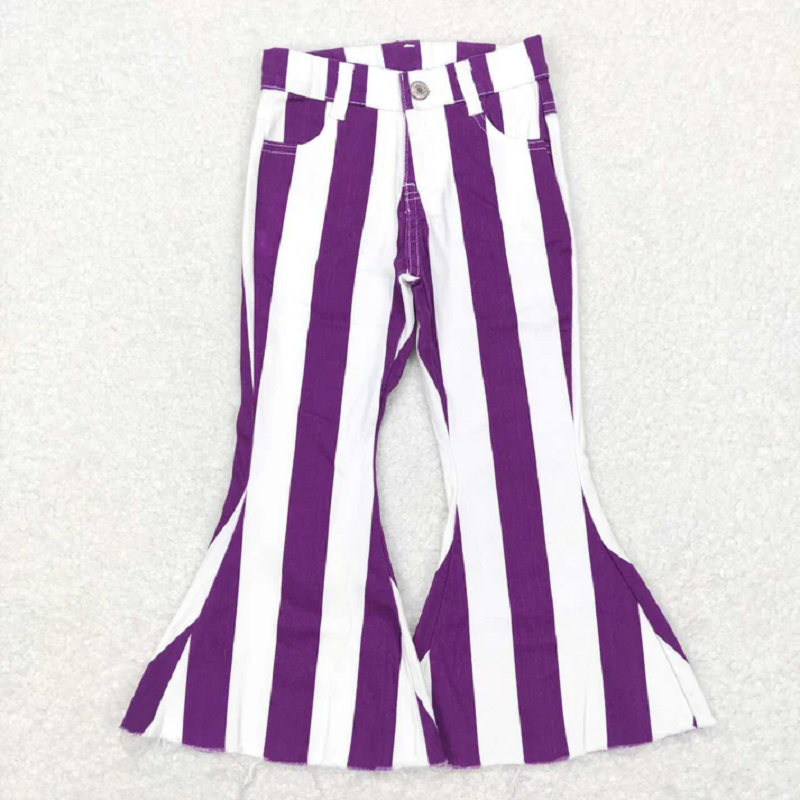 Match 7 Colors Stripes Denim Bell Bottom Jeans Girls Pants Sisters Wear D 6.17