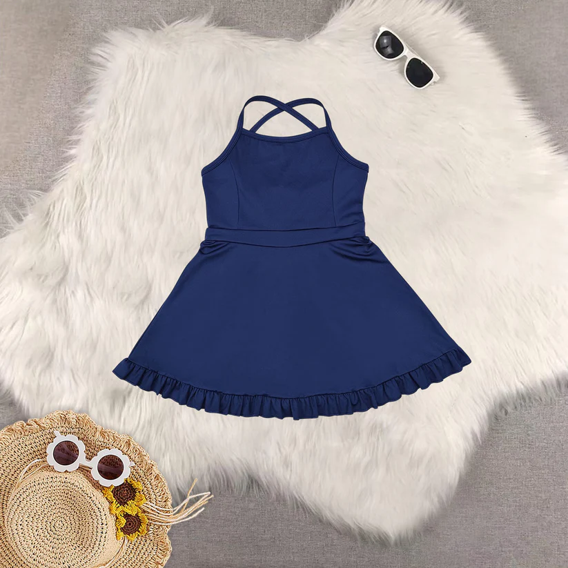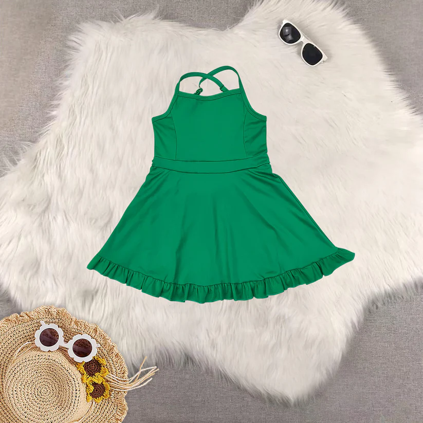 1-6 color Match colorful baby girl clothes Solid red sportswear skirt swimsuit RTS D 927