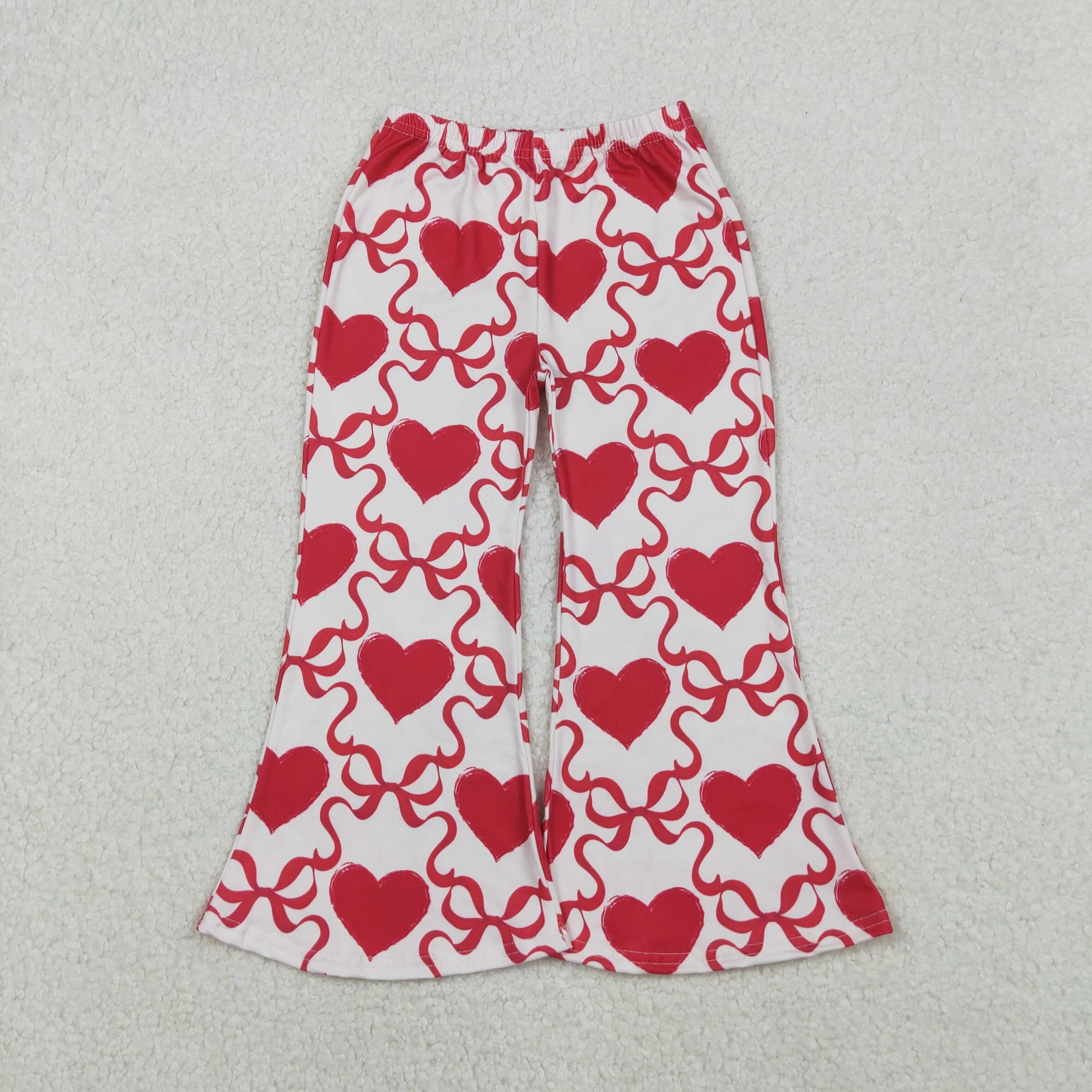 P0895 Baby Girls Red Bows Hearts Checked Valentine Bell Bottom Pants D 1023