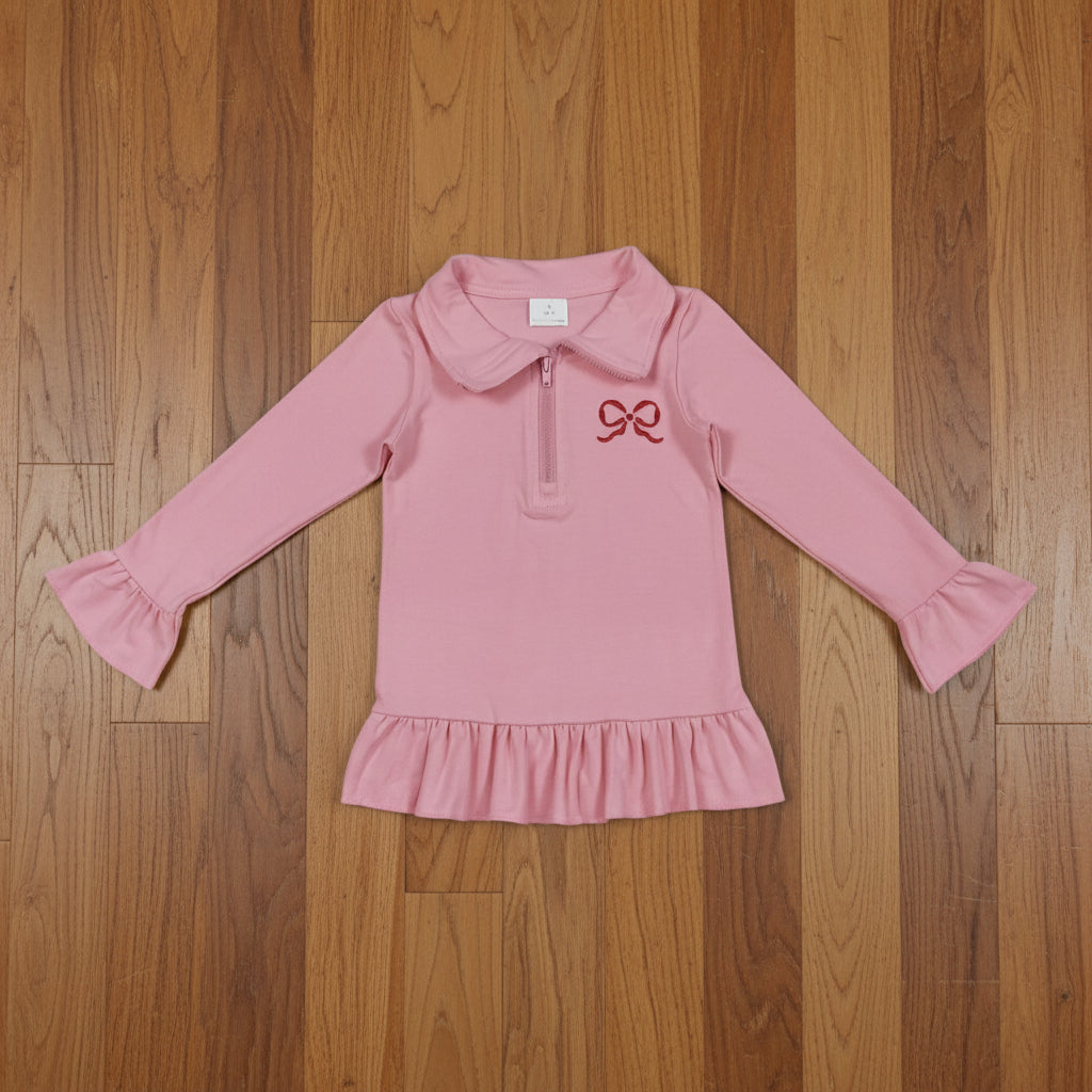 pink coquette embroidery zip pullover