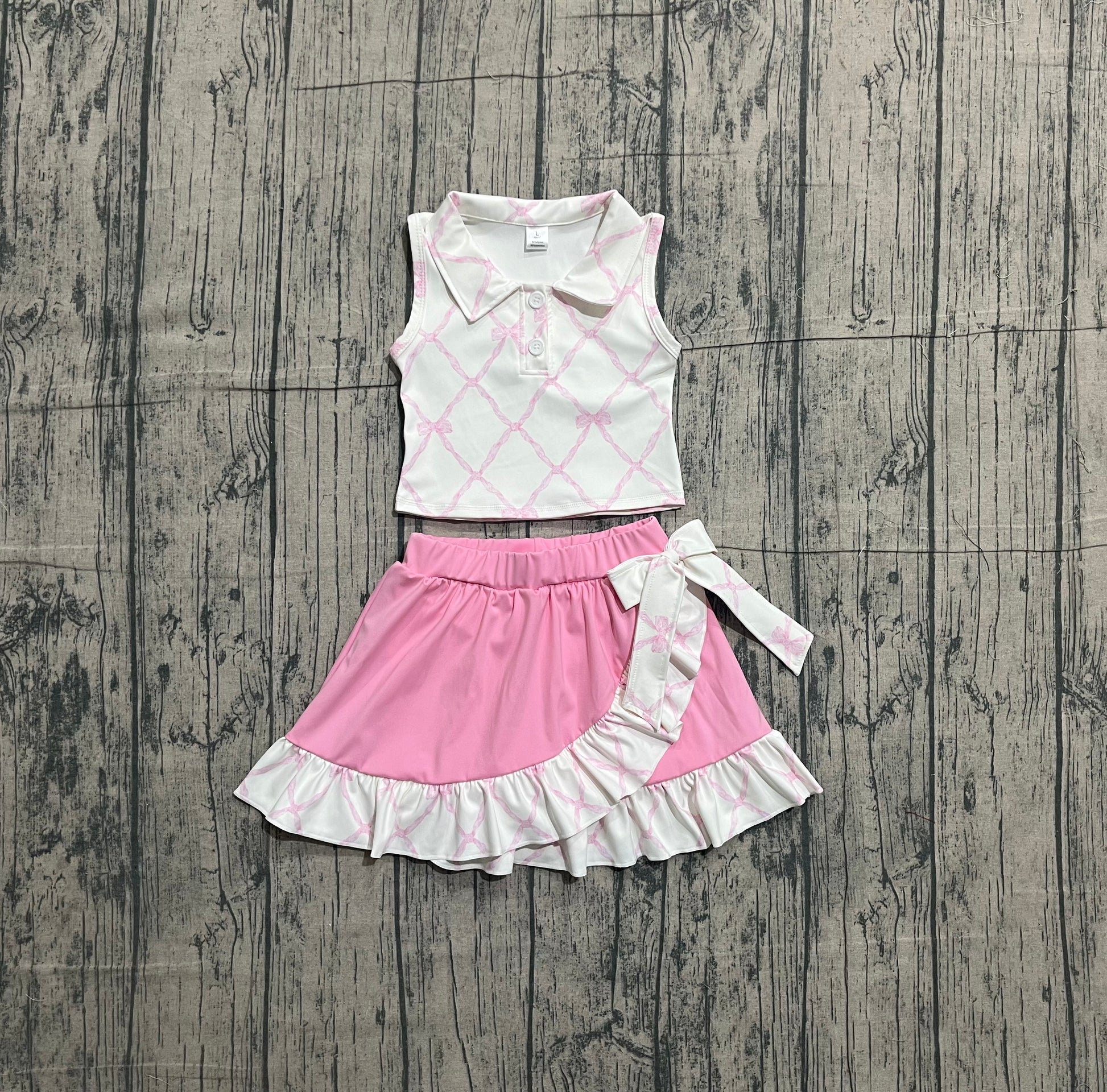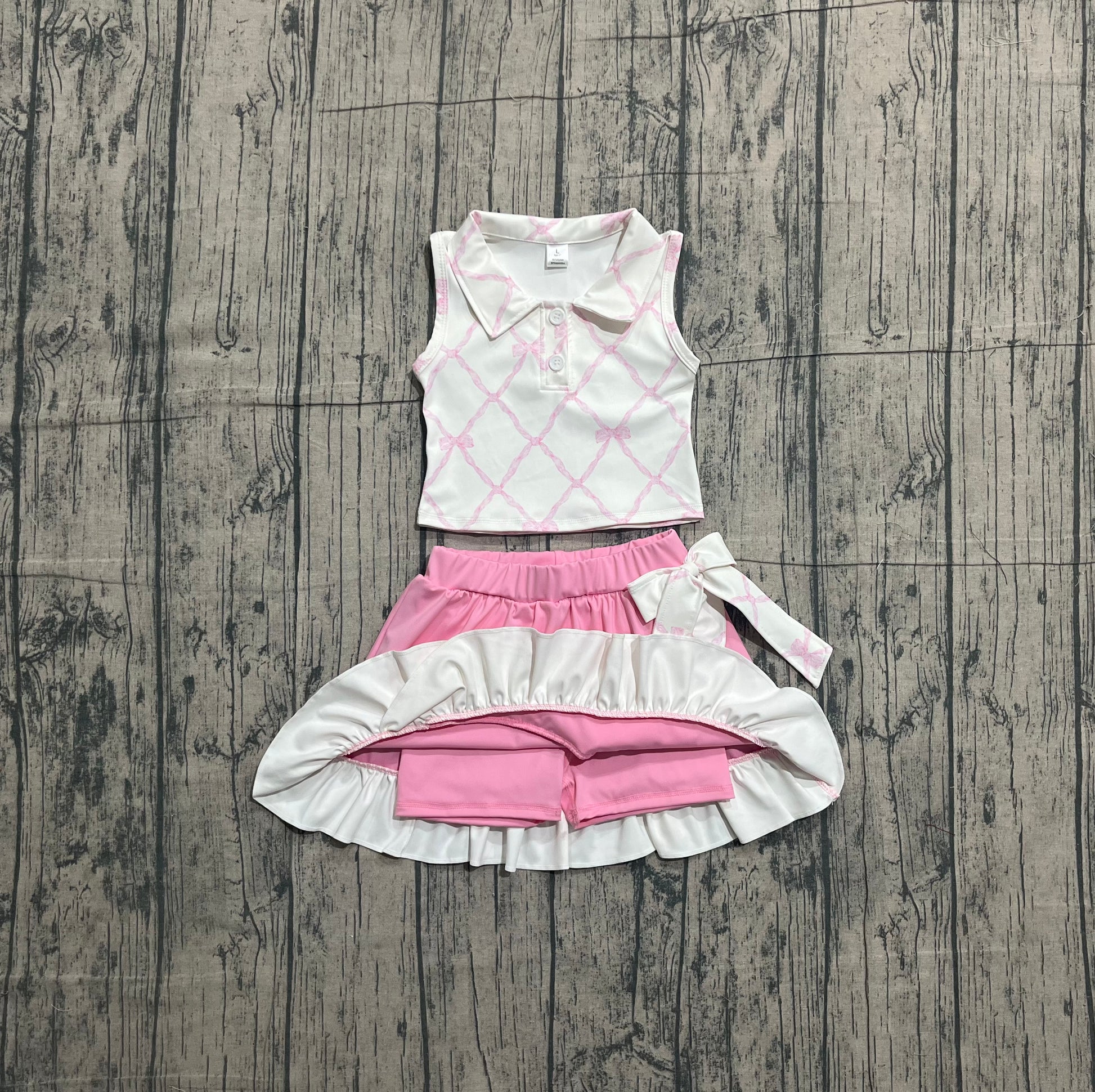 Pre-order Baby Girls Pink Bows Checked Button Top Ruffle Skirt Shorts Yoga Clothes Sets