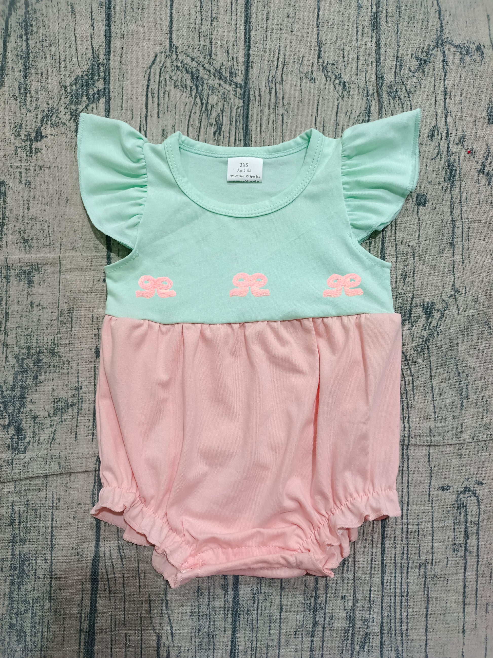 Pre-order Embroidery Bows Baby Girls Flutter Sleeve Patchwork Ruffle Rompers