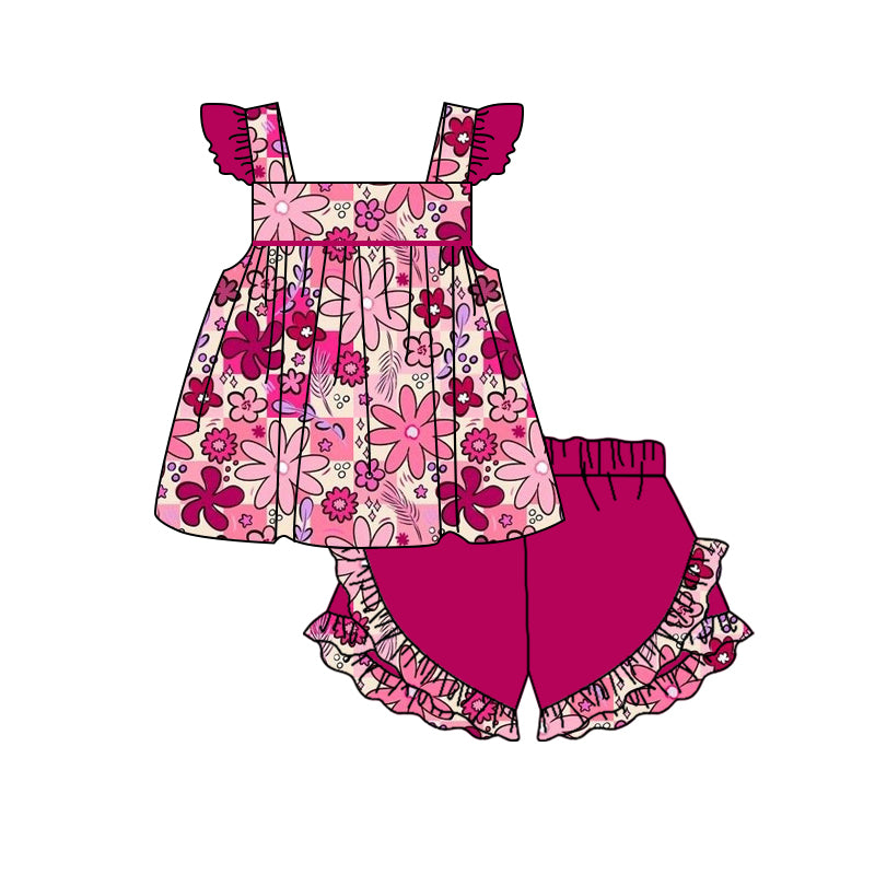 GSSO1005 Floral purple lace sleeveless shorts suit