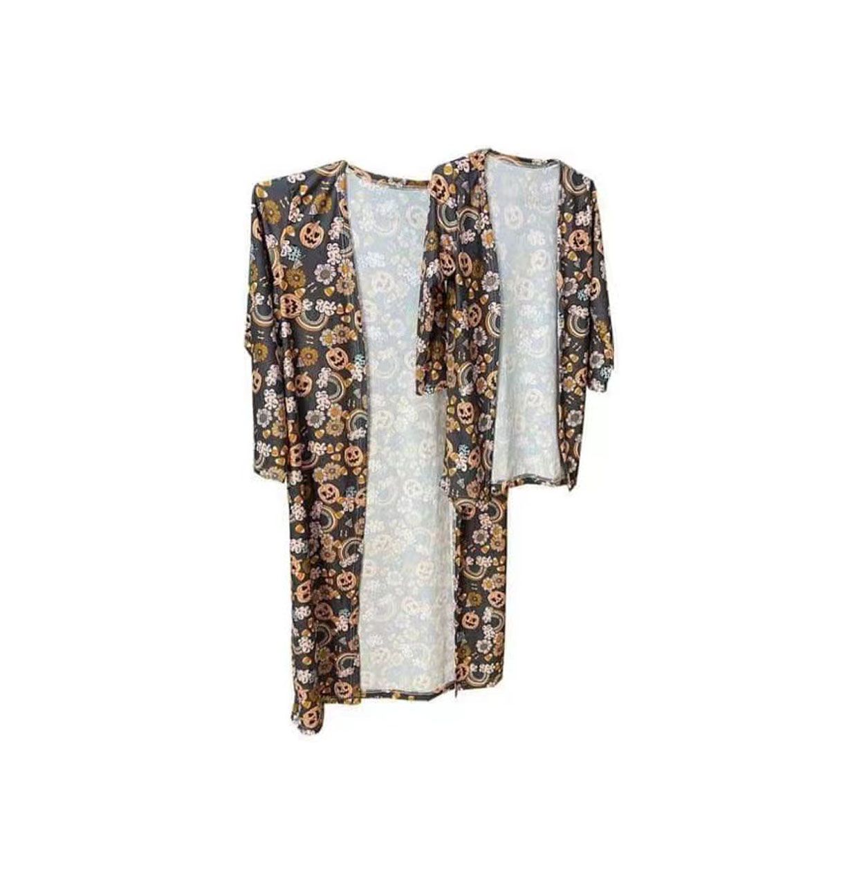 GT0045 Adult Girls Halloween Pumpkin Rainbow Long Sleeve Cardigan Jacket Parent-child wear