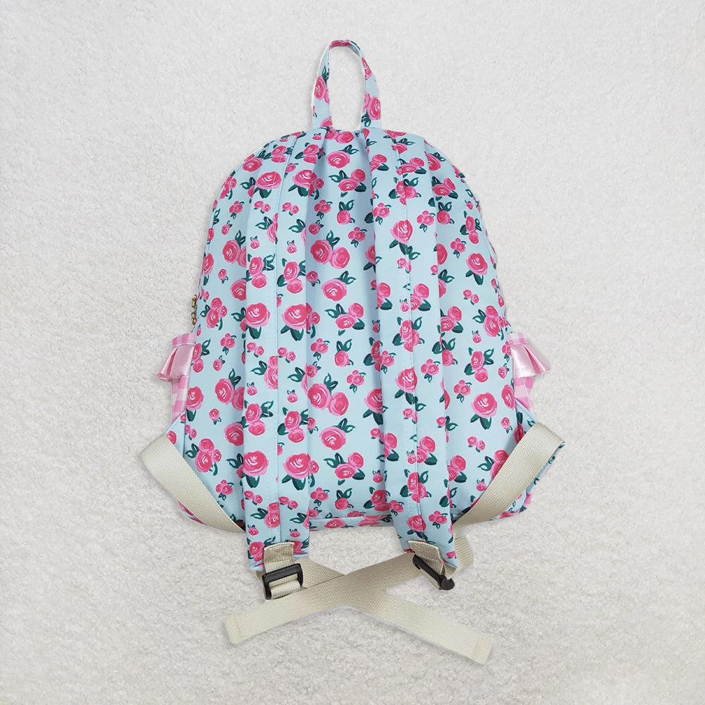 BA0217 Floral Pink Plaid Blue Backpack D 8.9