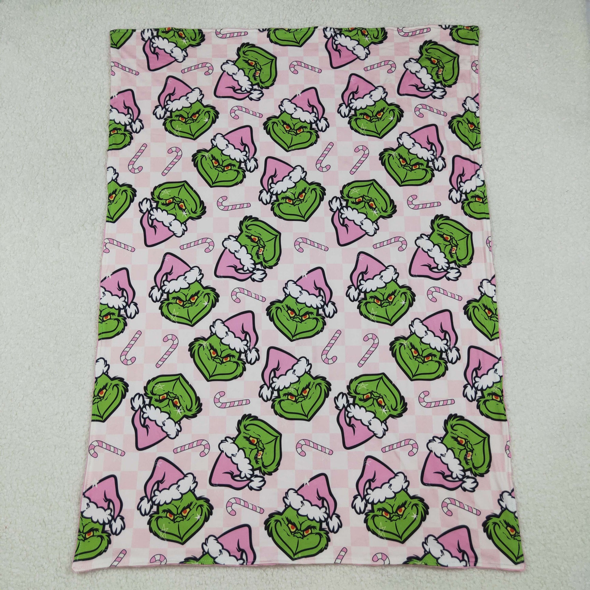 BL0225 Baby Kids Green Face Candy Cane Christmas Blankets D 101