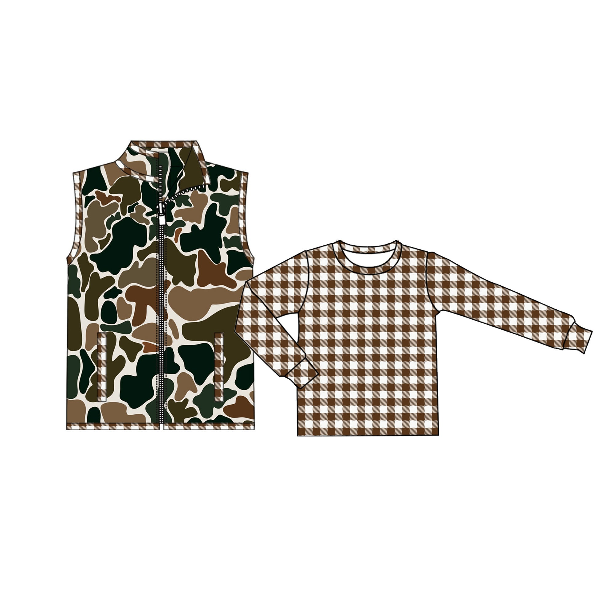 BT0857 Baby Boys Camo Hunting Tops Vest 2pcs Sets