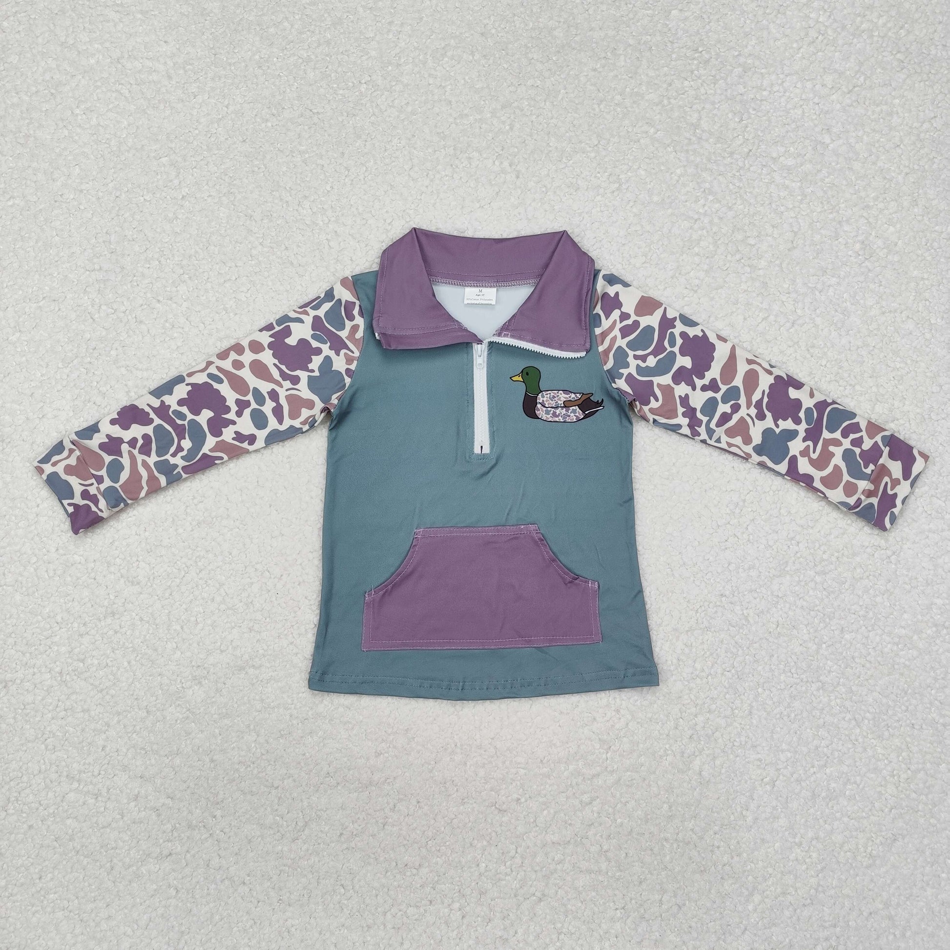 BT0928 Beige Camouflage Duck Pocket Zipper Long Sleeve Top D 820