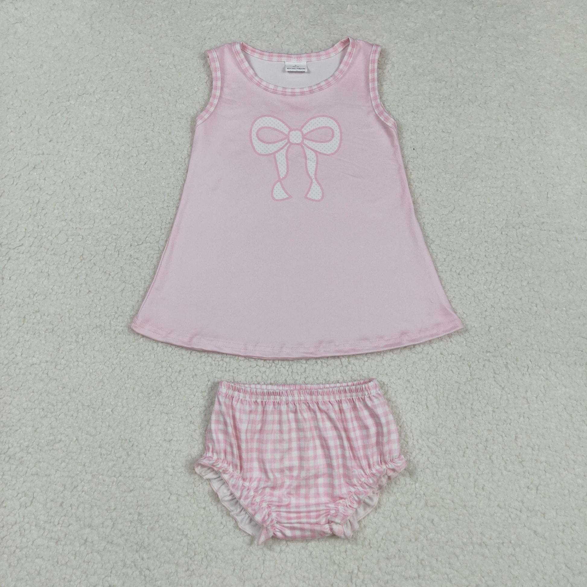GBO0469 Pink checked bow pattern sleeveless briefs set D 8.4