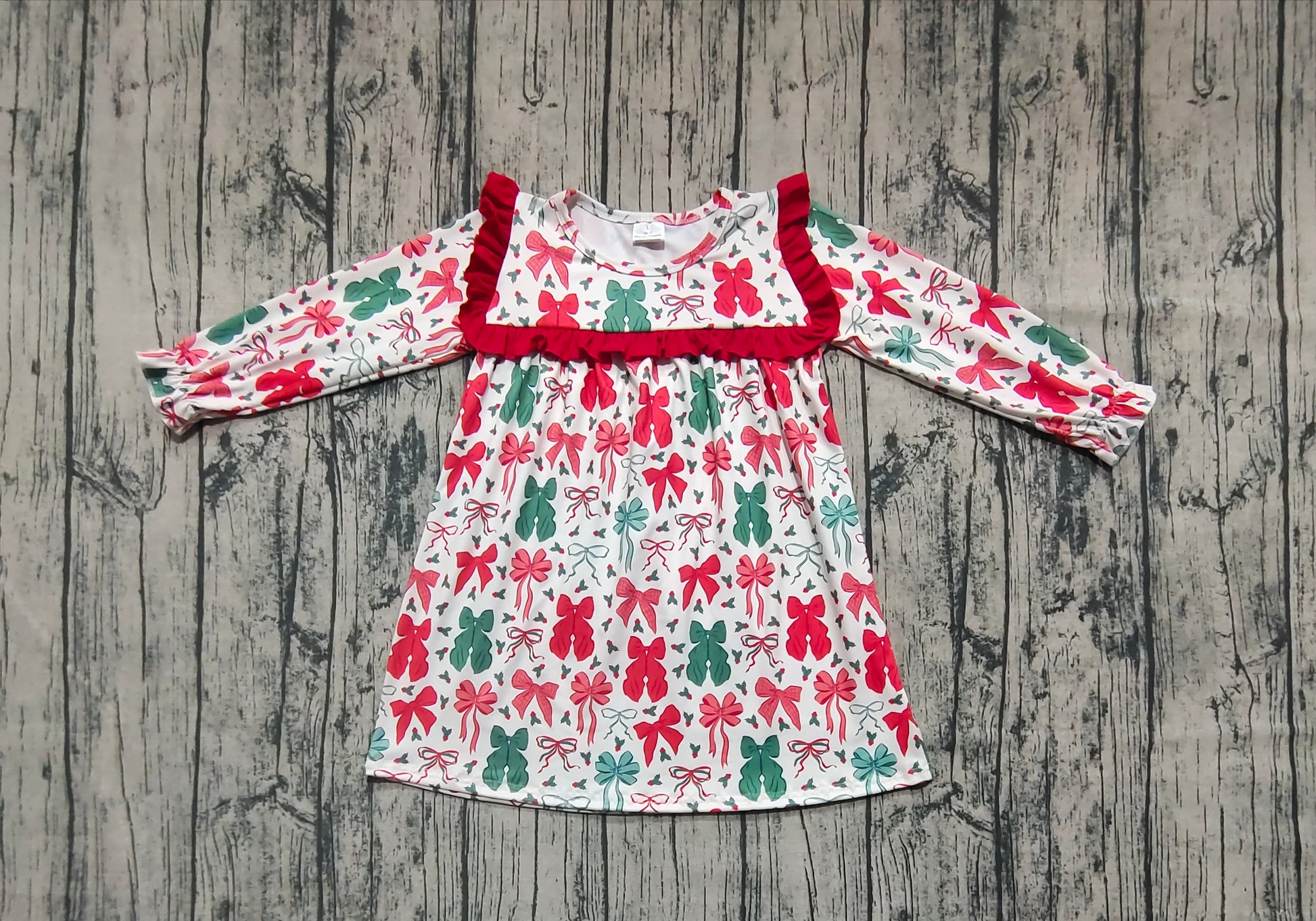 GLD1046 Baby Girls Christmas Red Green Bows Knee Length Dresses D 6.25