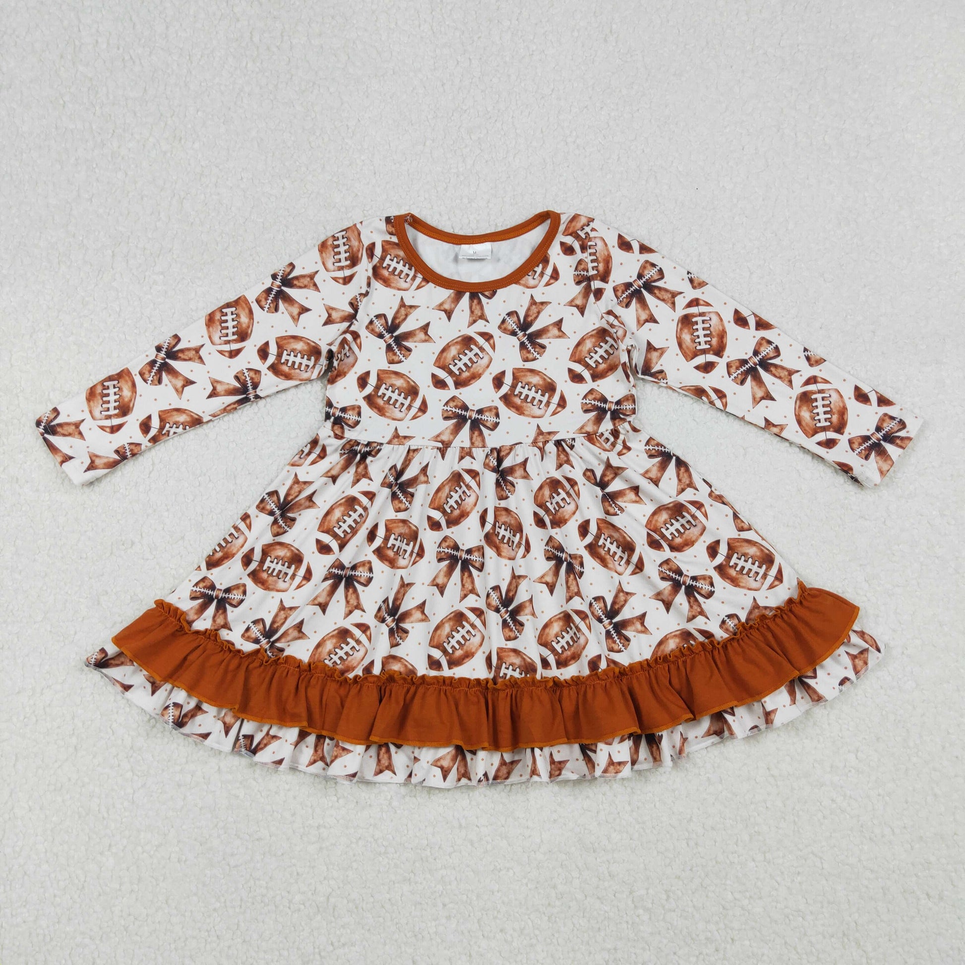 GLD1268 Baby Girls Footballs Bows Plaid Team Ruffle Knee Length Dresses D 929