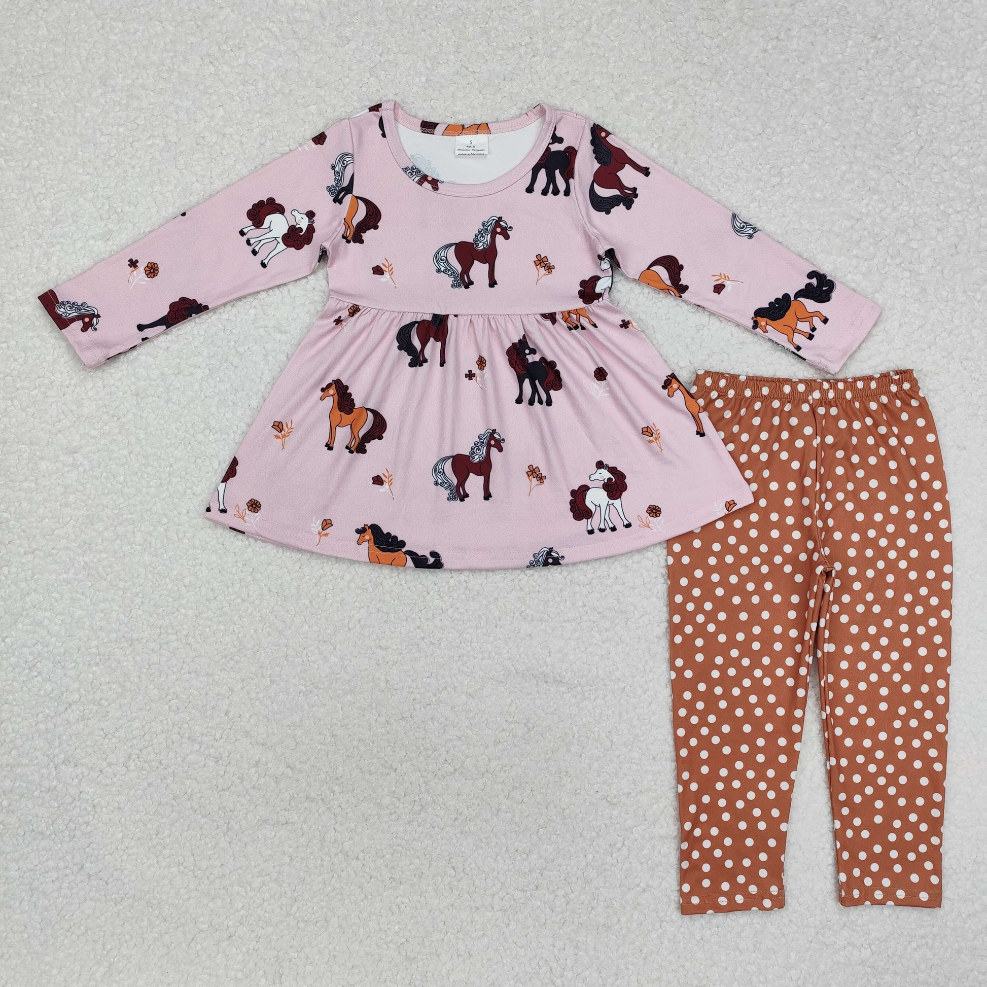GLP2072 Pony pink long sleeve polka dot brown trousers suit