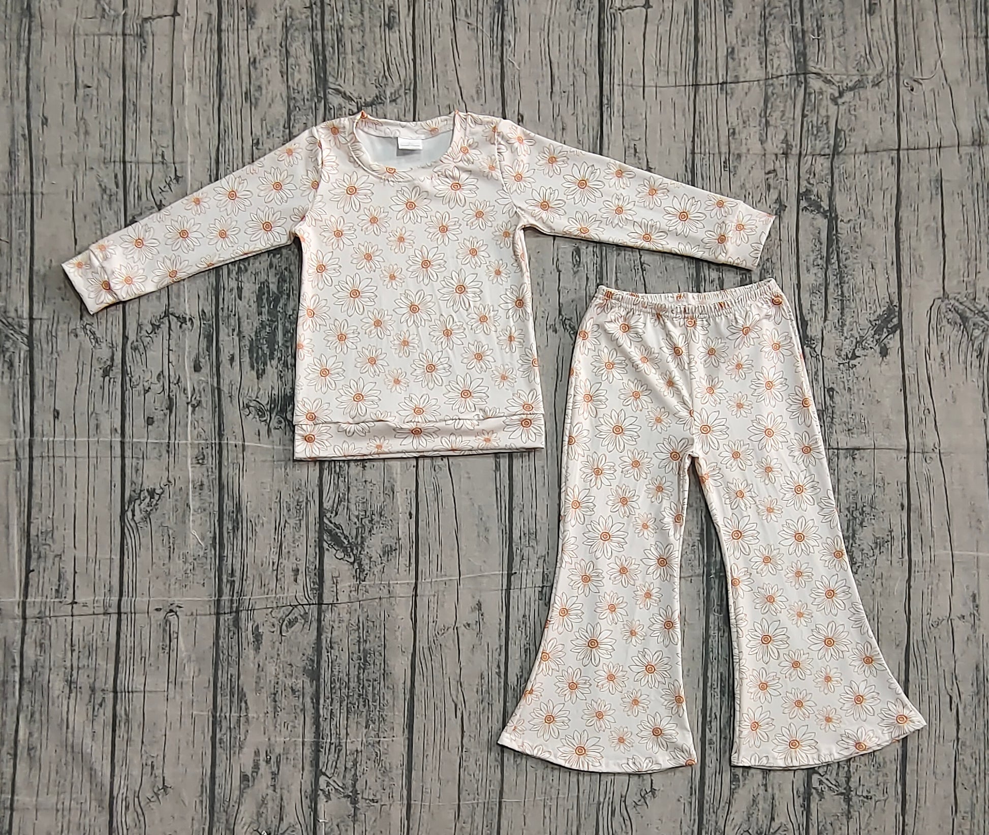 presale GLP2877 Baby Girls Pink Flowers Top Bell Bottom Pants Clothes Sets D 1103