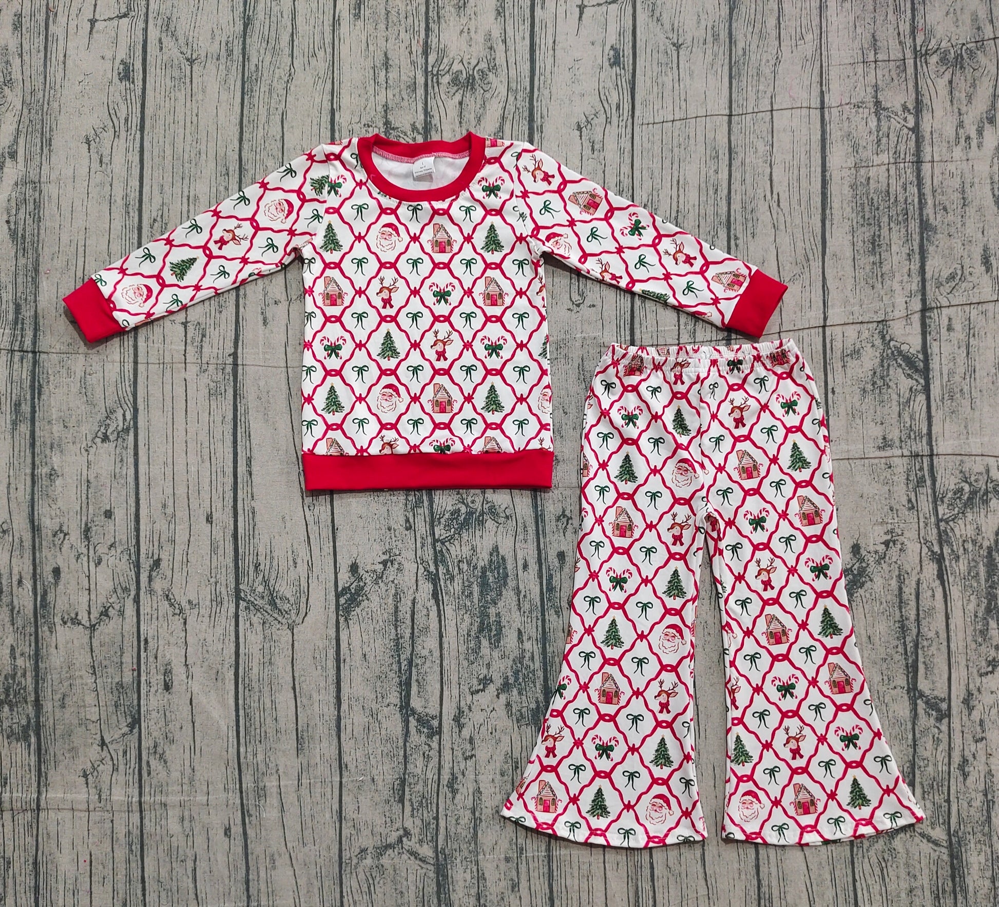 presale GLP2878 Baby Girls Red Bows Santa Top Bell Bottom Pants Christmas Clothes Sets D 1105