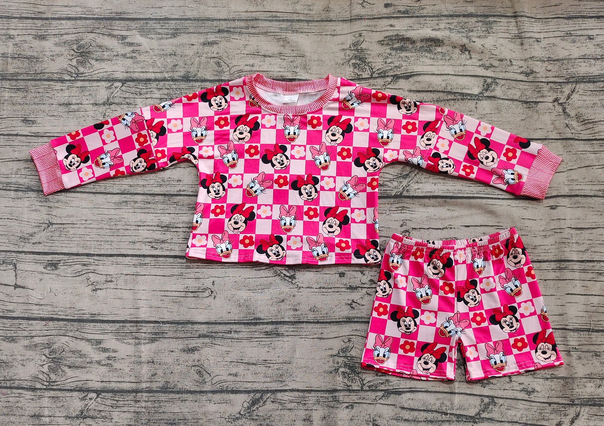 GLS0010 Baby Girls Pink Long Sleeves Cartoon Mouse Top Skorts Set D 4.8