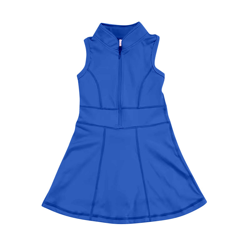 GSD1381 Baby Girls Solid Blue Zipper Yoga Wear Sleeveless Dress D 4.11