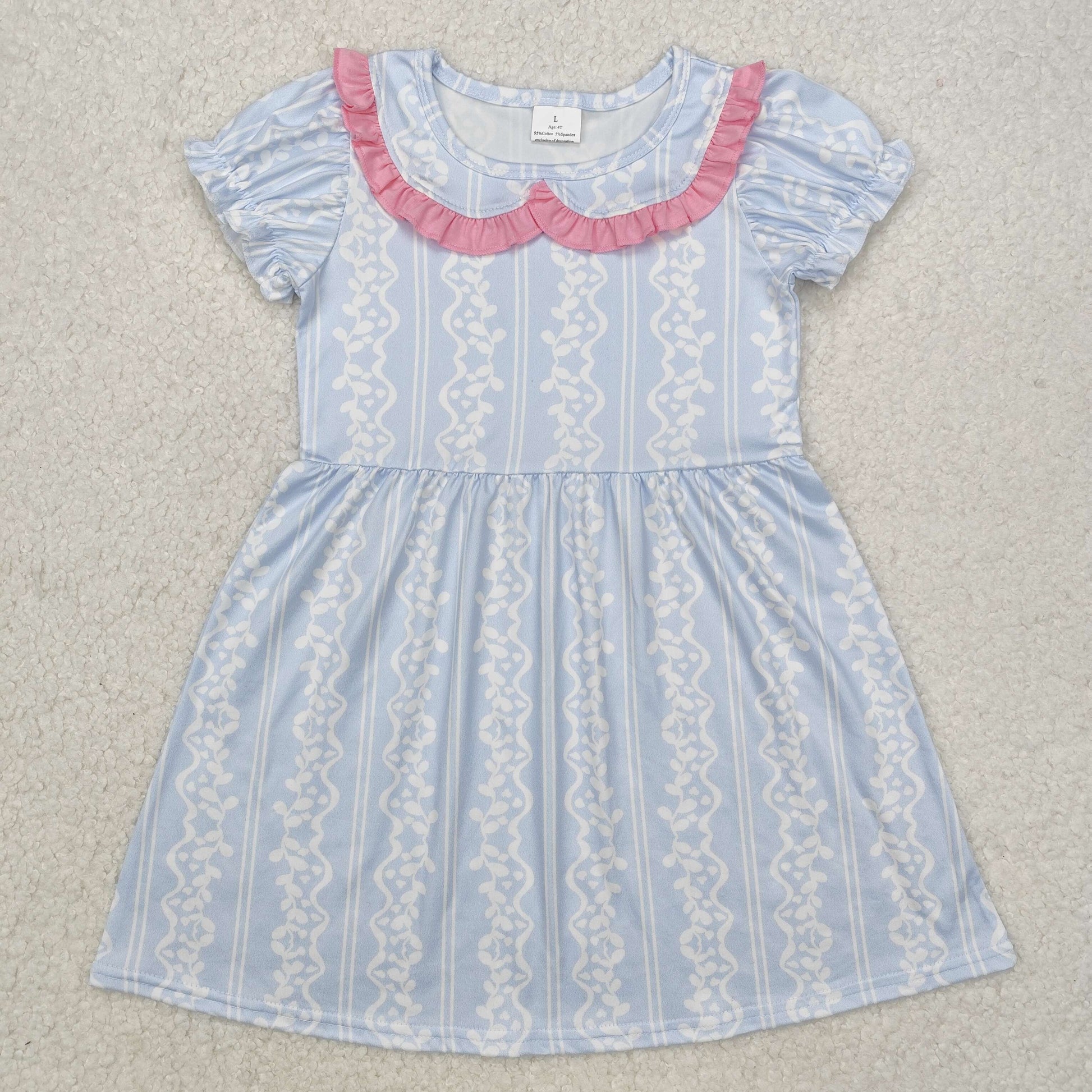 GSD1499 Striped pattern pink lace baby doll collar blue short-sleeved dress