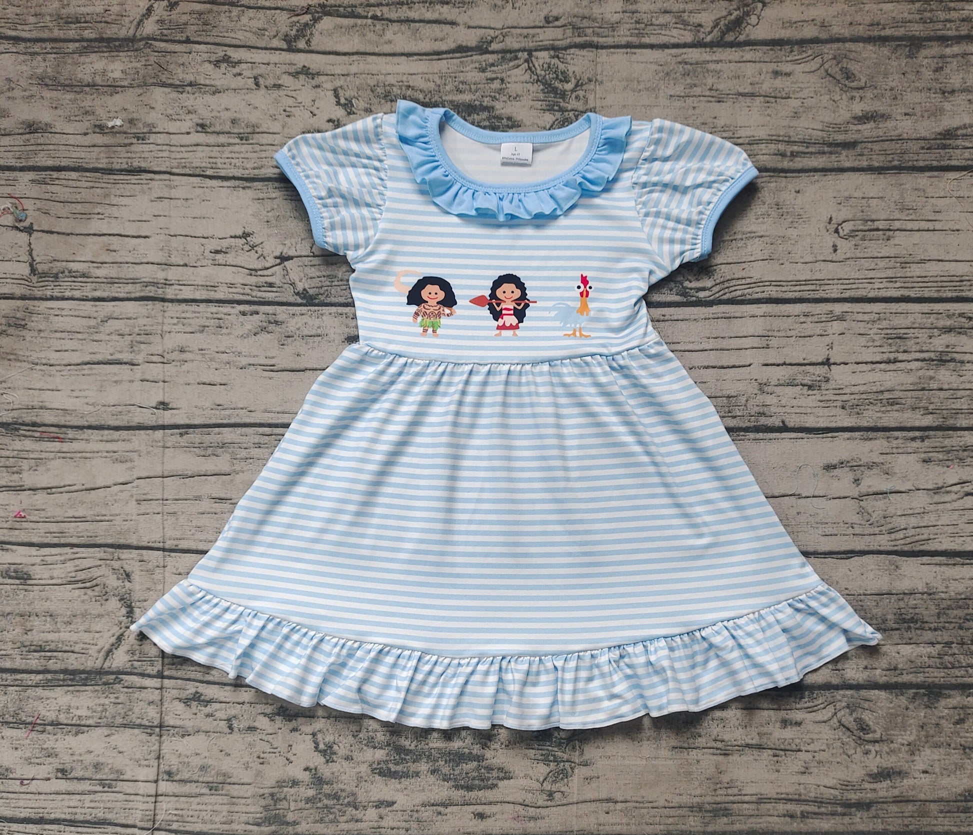GSD1582 Cartoon Girl Chick Striped Blue Lace Short Sleeve Dress D 3.3