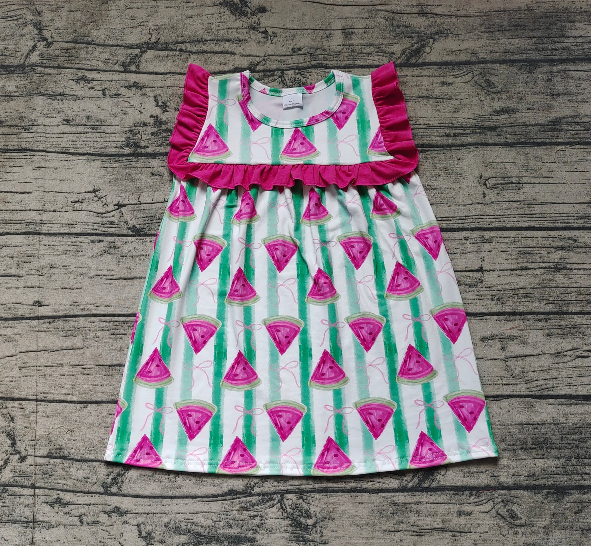 GSD1911 Pink Bow Pattern Watermelon Green Striped Sleeveless Dress
