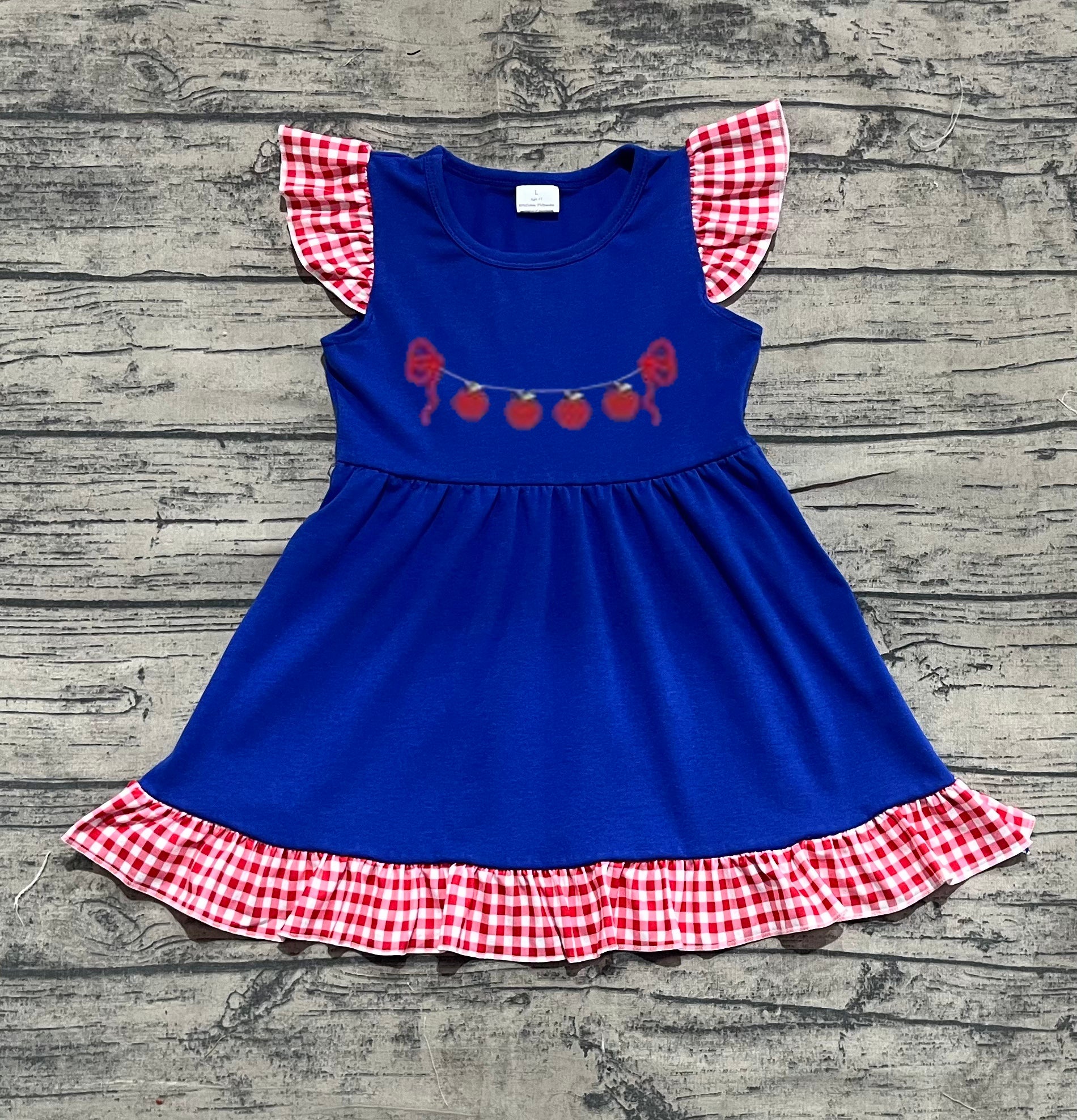 GSD2153 Apple Red Plaid Lace Blue Fly Sleeve Dress D 5.14