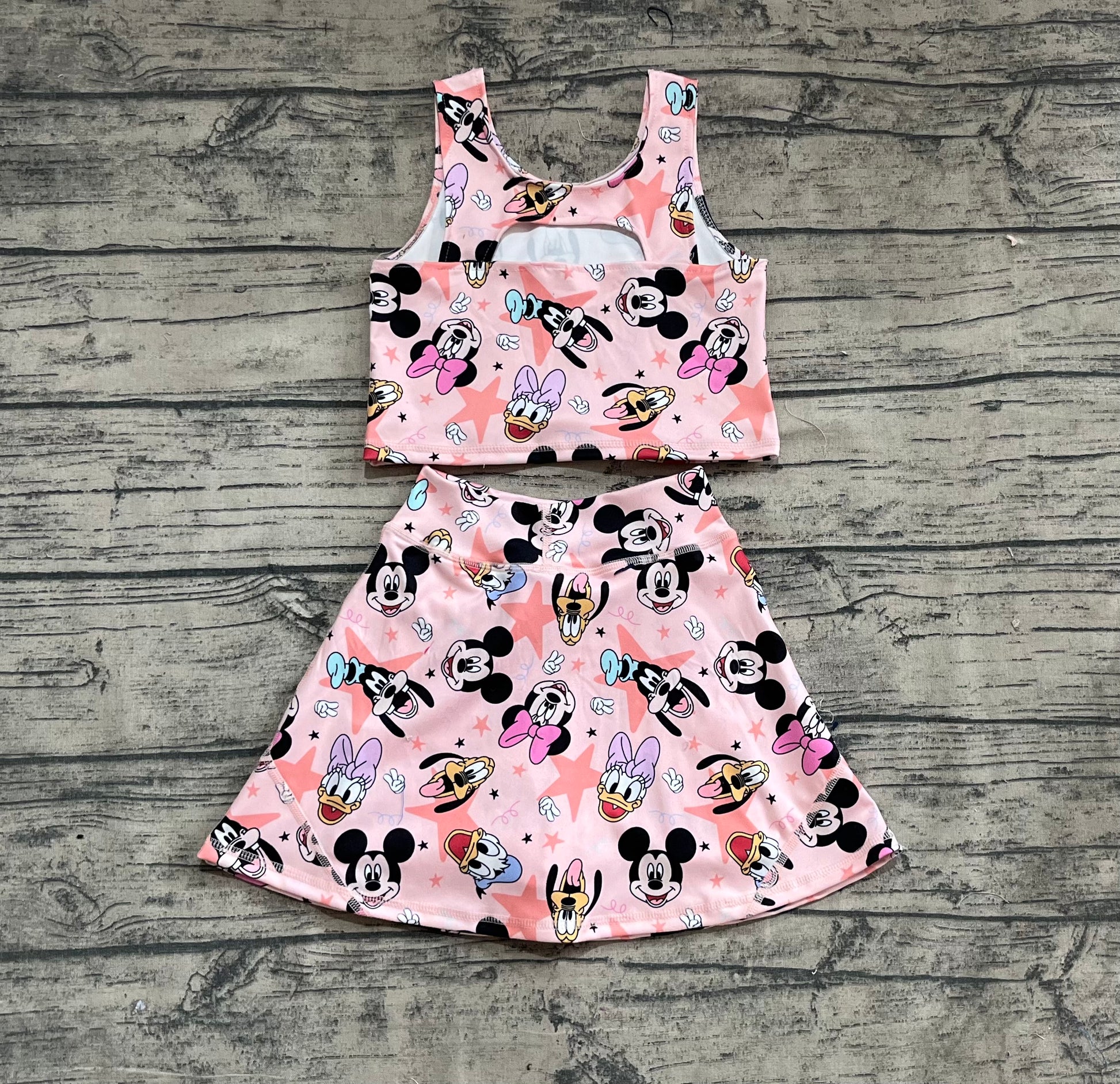 GSD2332 Baby Girls Sleeveless Cartoon Mouse Ducks Top Skort Yoga Set D 4.3