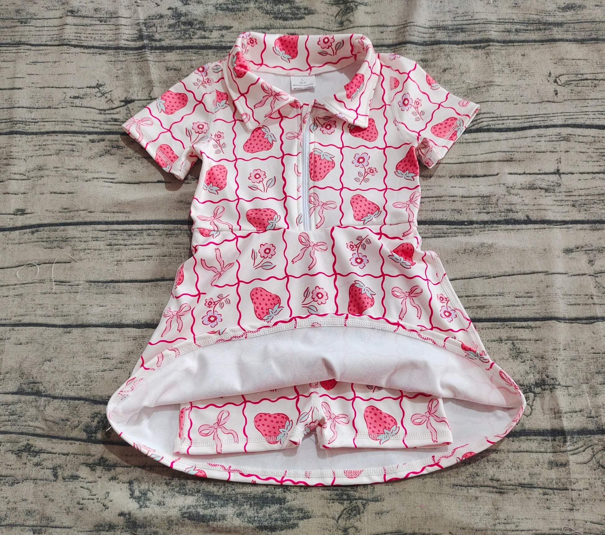 GSD2407 Strawberry Flower Pink Bow Pattern Plaid Yoga Short Sleeve Dress D 4.28