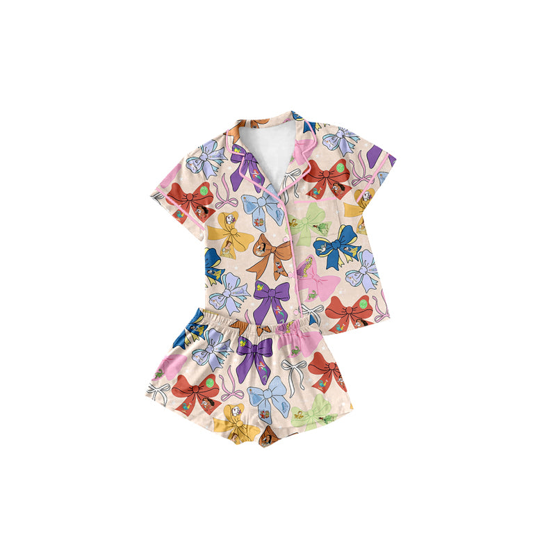 GSSO2321 Baby Girls Pink Cartoon Bows Button Pocket Top Short Pajamas Set D 4.19