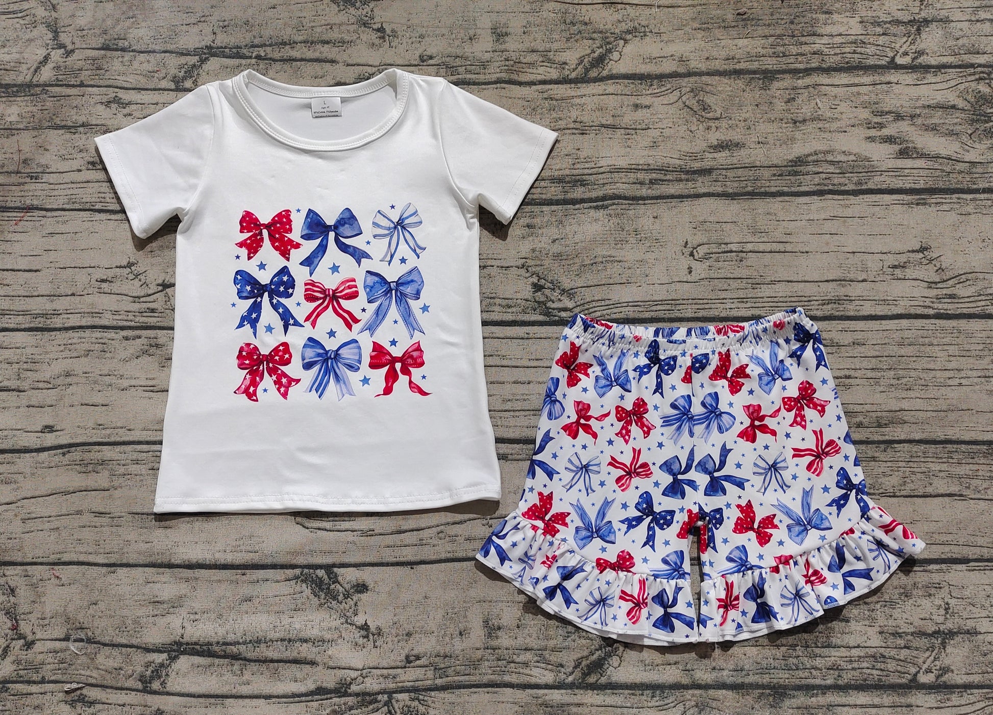 GSSO2512 Baby Girls Blue Red Bows Stars Top Ruffle Short 4th Of July Set D 4.7