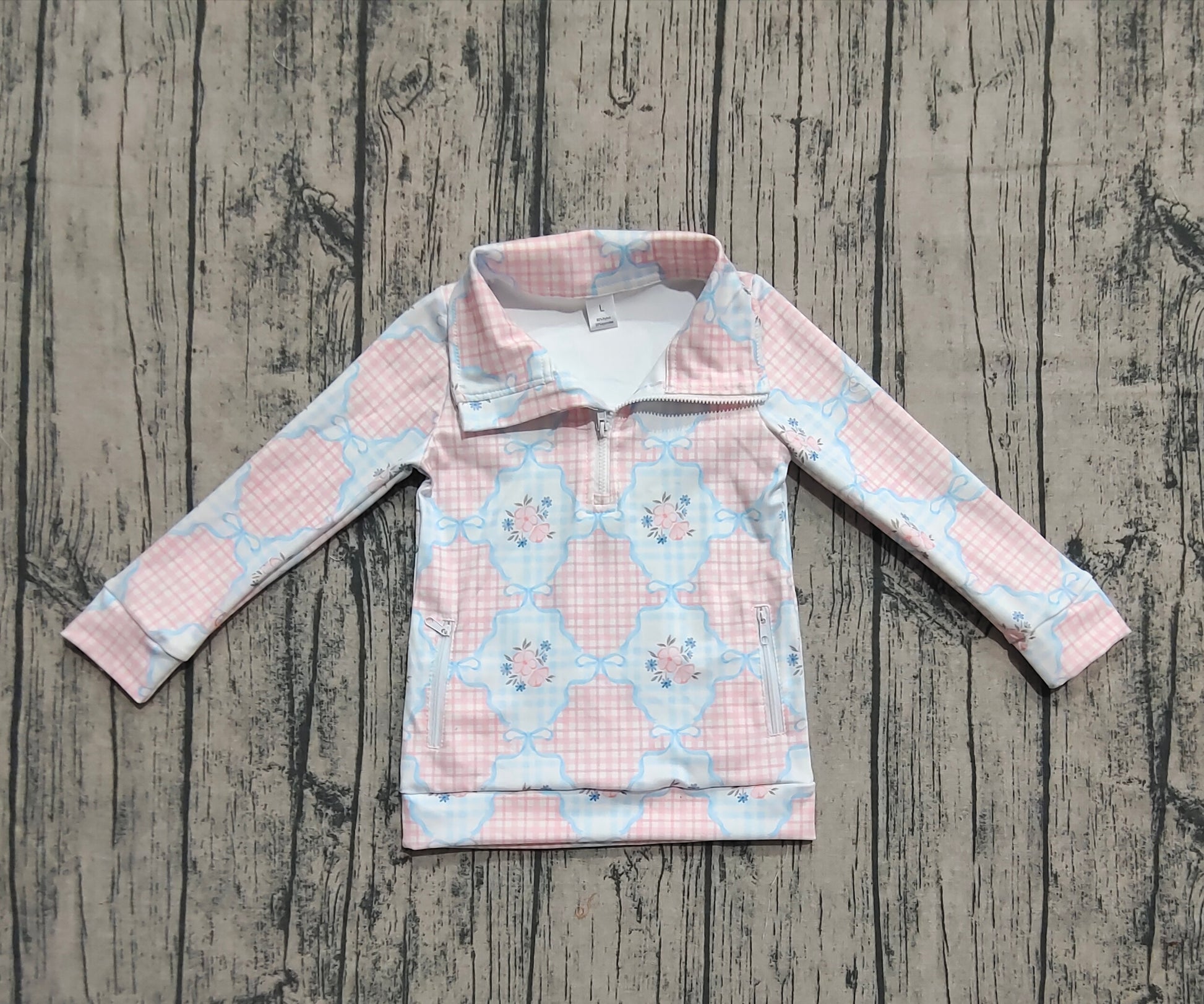 GT1062 Baby Girls Long Sleeves Pink Flowers Plaid Pockets Zipper Yoga Jackets D 822