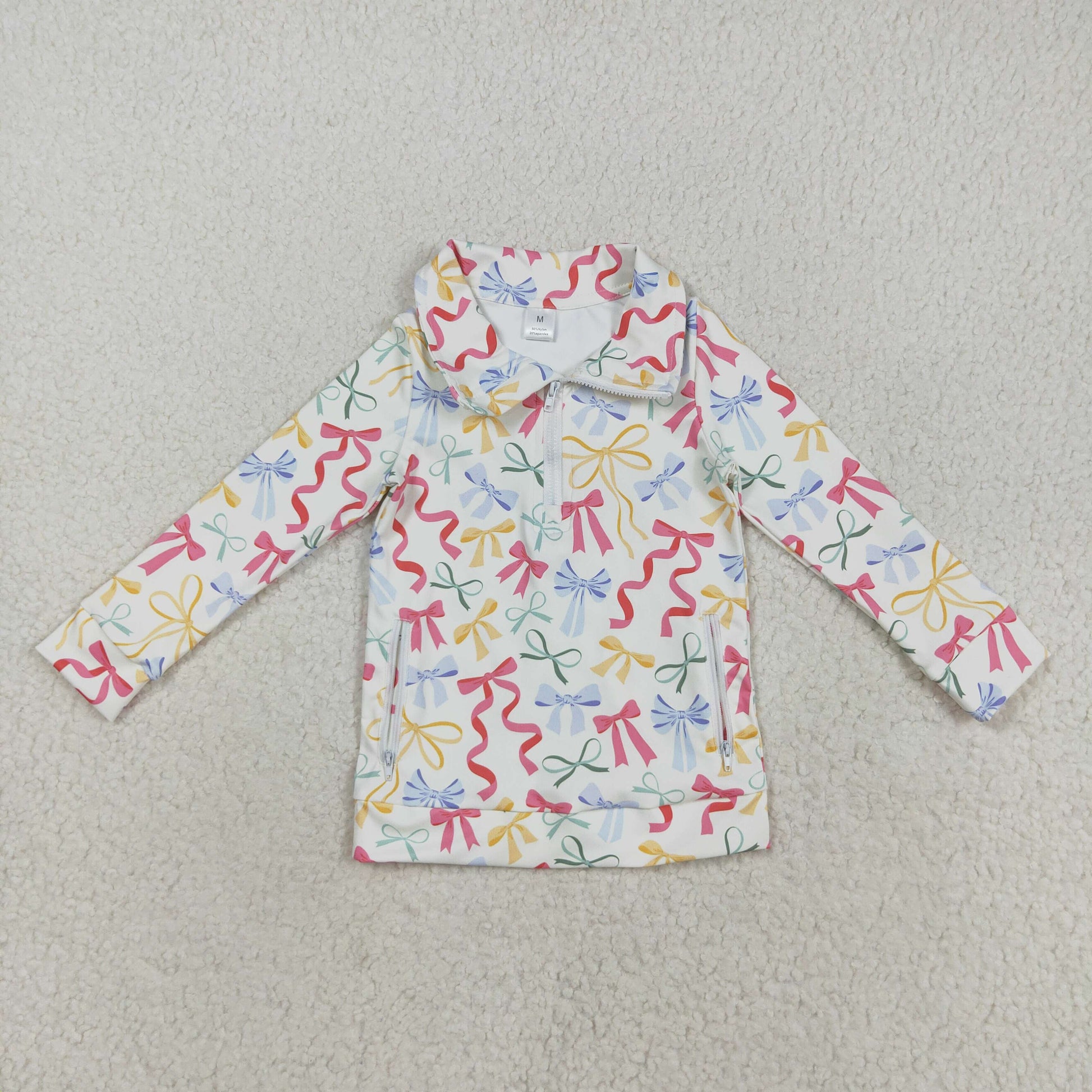 GT1065 Baby Girls Long Sleeves Colorful Bows Plaid Pockets Zipper Yoga Jackets D 7.17