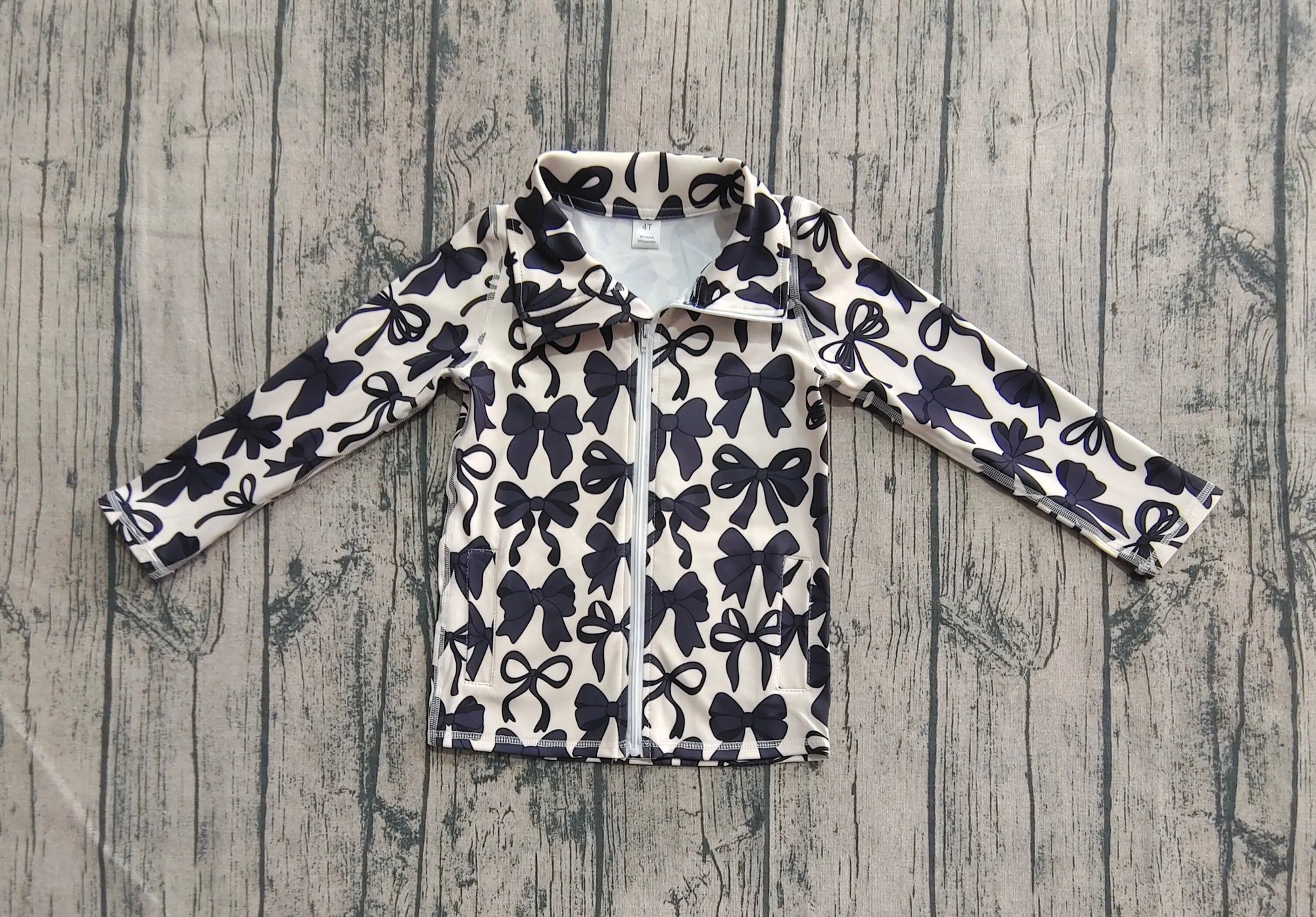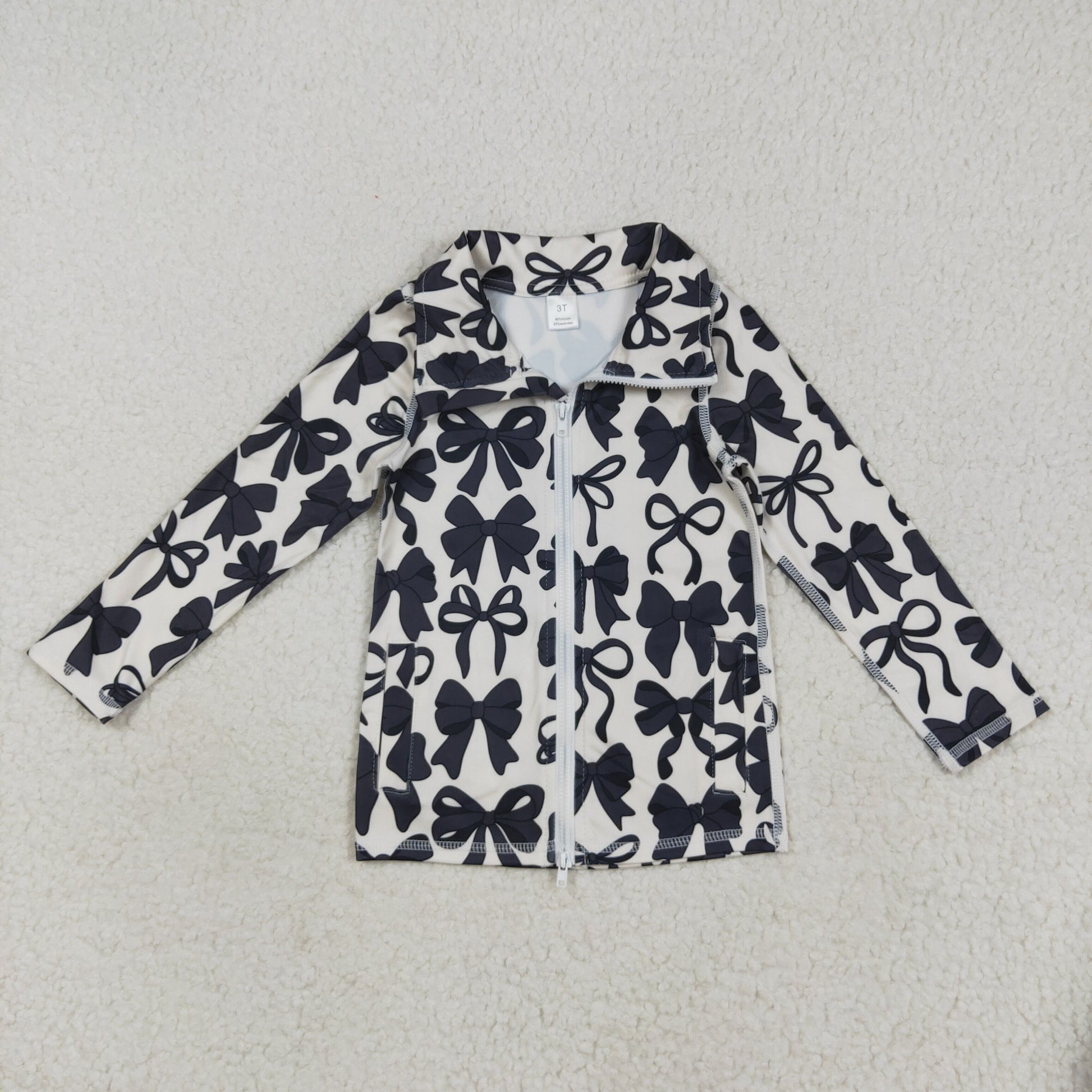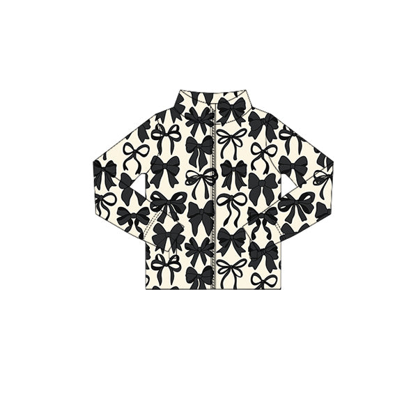 GT1084 Baby Girls Long Sleeves Black Bows Zipper Pockets Yoga Jacket Top D 926